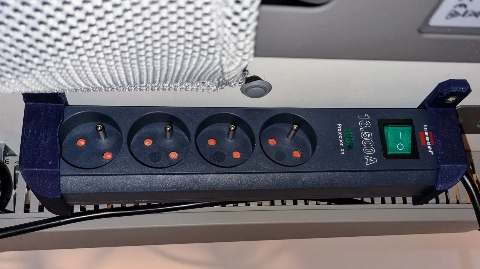 Giá đỡ 90 độ để gắn ổ cắm Brenenstuhl Eco-Line dưới gầm bàn theo chiều dọc. Phù hợp với mẫu Eco-Line, in bằng PLA với 3 lớp ngoại vi.