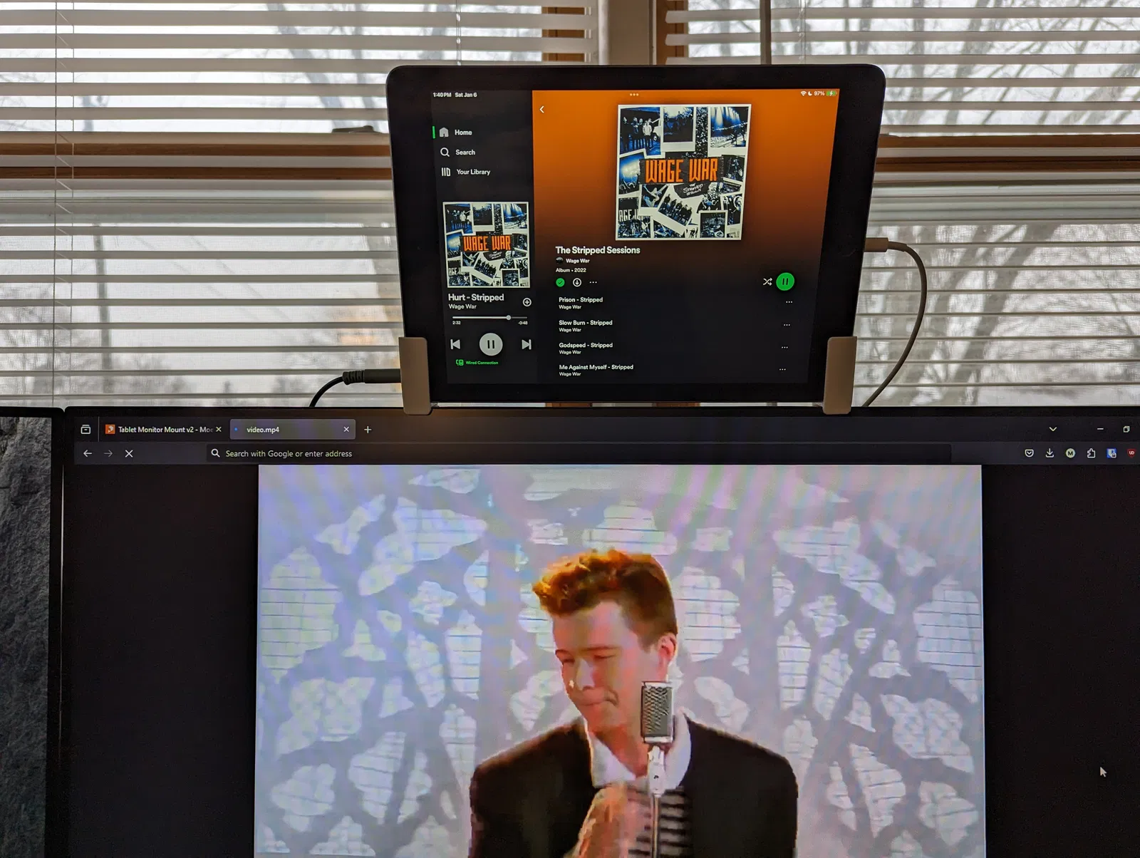 Đây là bản remix của thiết kế giá đỡ màn hình máy tính bảng ban đầu để tăng độ cứng và cải thiện tổng thể thiết kế. Phiên bản v2 cho phép giắc cắm tai nghe đi qua, bám chắc hơn và vừa với màn hình Dell mới. Bạn chỉ cần in một cái và phản chiếu nó cho mặt còn lại. Có tệp Step để tùy chỉnh và sử dụng băng dính 3m Command Strips để gắn.