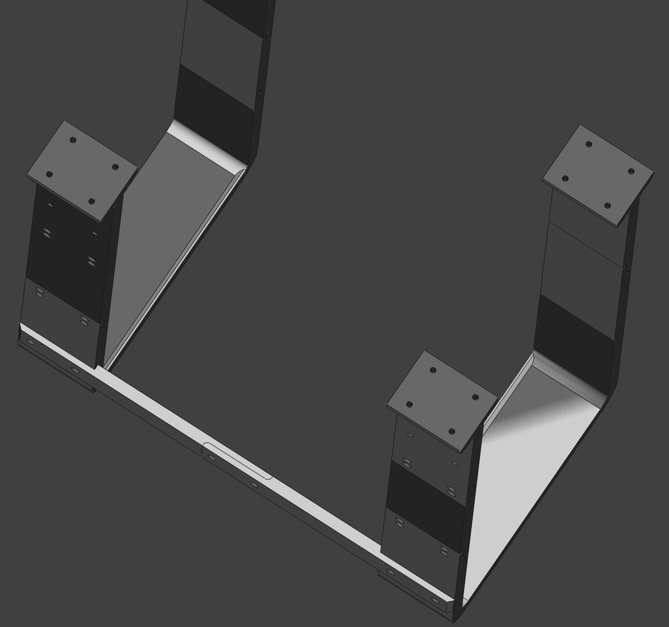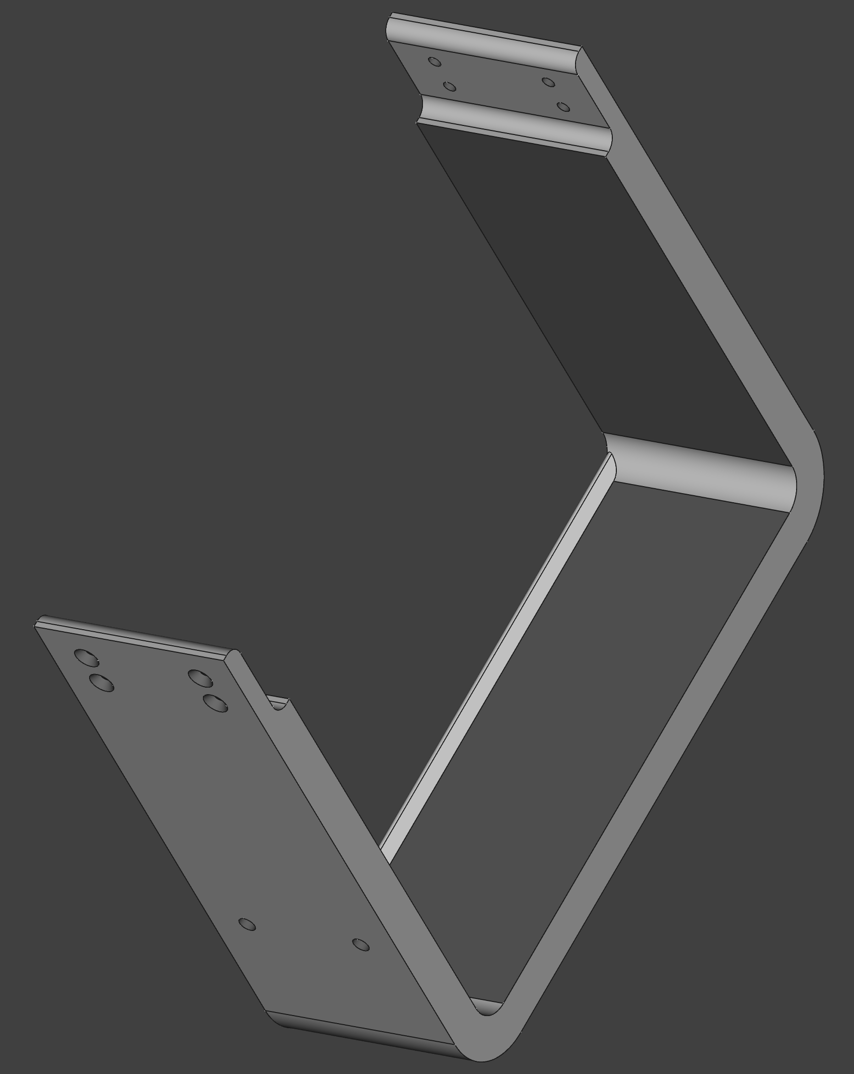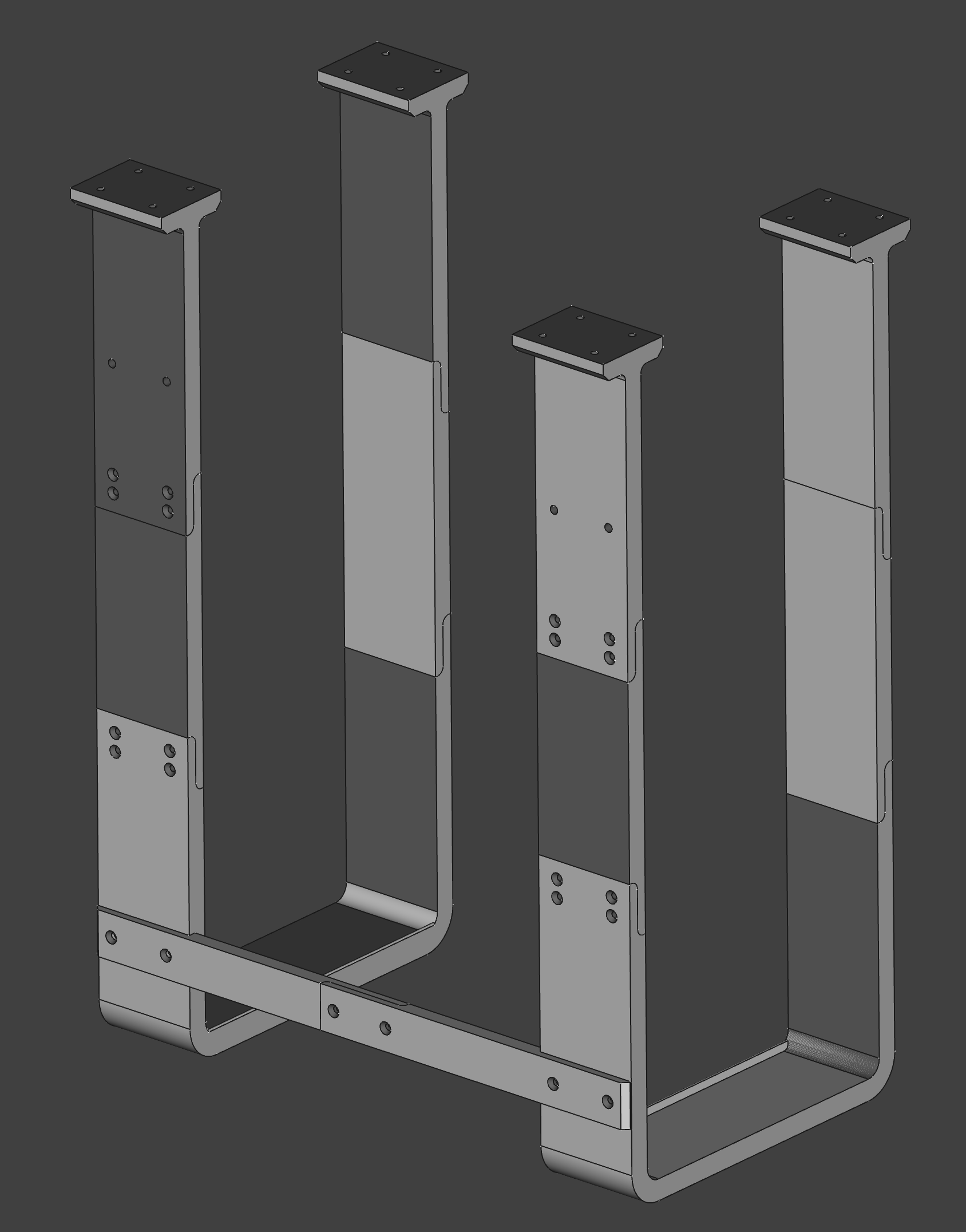 Làm giá đỡ PC dưới bàn để bàn làm việc nâng hạ, kích thước PC 20.5x46.5x41 cm, giá đỡ có không gian 21x52.3x41 cm. Dùng ống ren đồng M4 và ốc chìm. Vật liệu PETG, in trên Prusa MK3S+. Tốn 2.7kg nhựa.