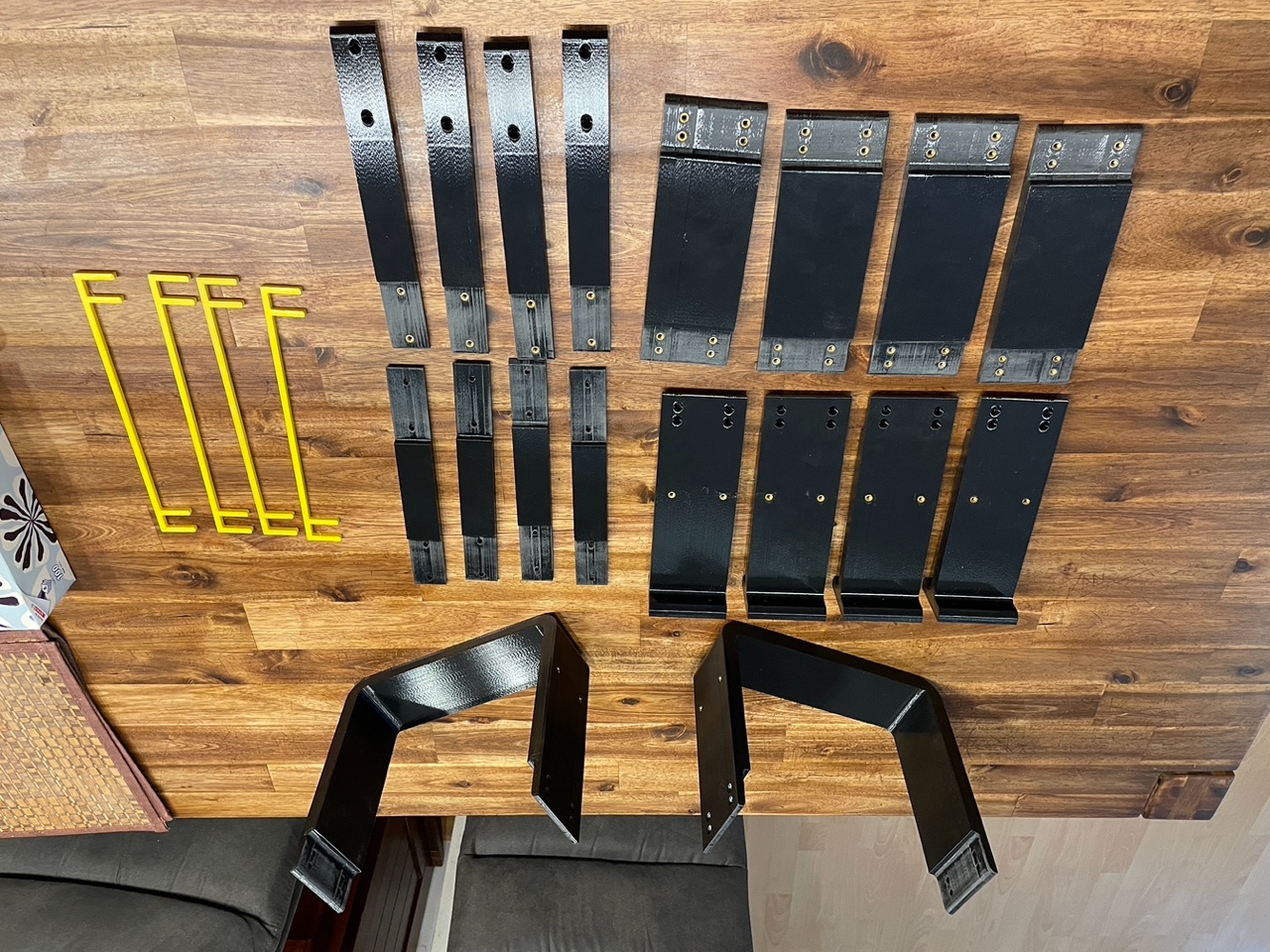Để dễ lắp ráp hơn và khỏi bị cong vênh, tui cũng có làm thêm cái bộ phận hỗ trợ lắp ráp nữa. Mấy cái màu vàng vàng trên hình của tui đó là mấy cái đó đó.