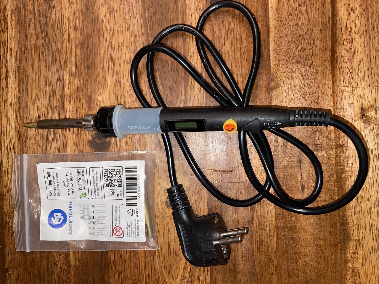 Phần kết nối mấy cái bộ phận lại với nhau, tui dùng mấy cái ống ren đồng M4 và ốc chìm đầu M4. Mấy cái ống ren này được gắn vô mấy cái lỗ 5.6mm có sẵn, bằng cách dùng máy hàn nhiệt 250 độ C và cái đầu hàn ống ren M4 chuyên dụng, gắn từ từ, chậm rãi, có cảm giác nha. Nghĩa là mấy cái lỗ nào không có khoét vát mặt thì đều gắn ống ren hết - trừ mấy cái lỗ ở trên để gắn vô mặt bàn nha. Cái máy hàn nhiệt tui mua trên Amazon, loại này xài chung với mấy cái đầu này được. Cũng có mấy cái đầu hàn ống ren xài chung với máy hàn Weller hay mấy loại khác nữa. Trên Youtube có nhiều video hướng dẫn cách gắn ống ren đồng vô nhựa nè, dễ lắm luôn.