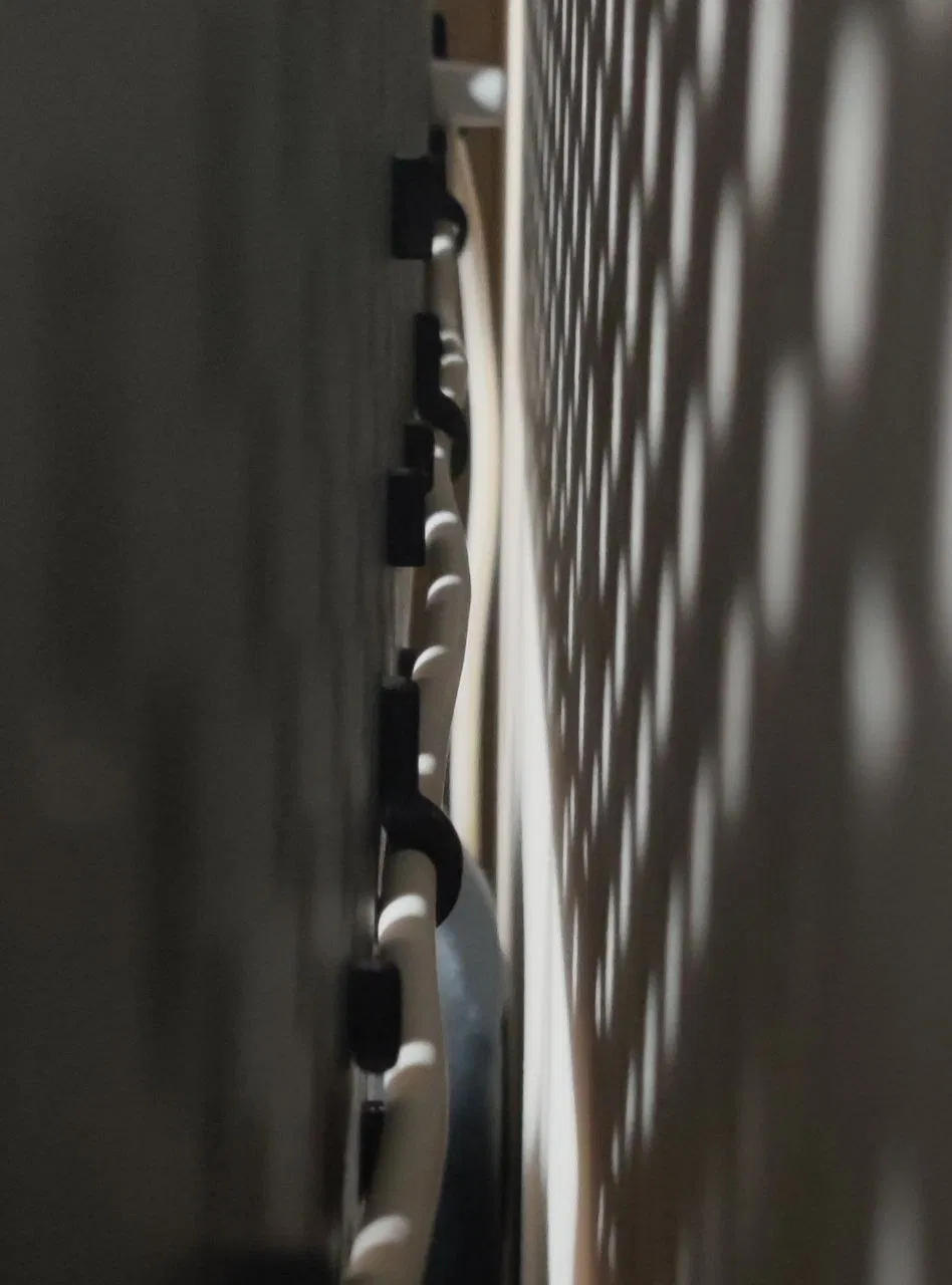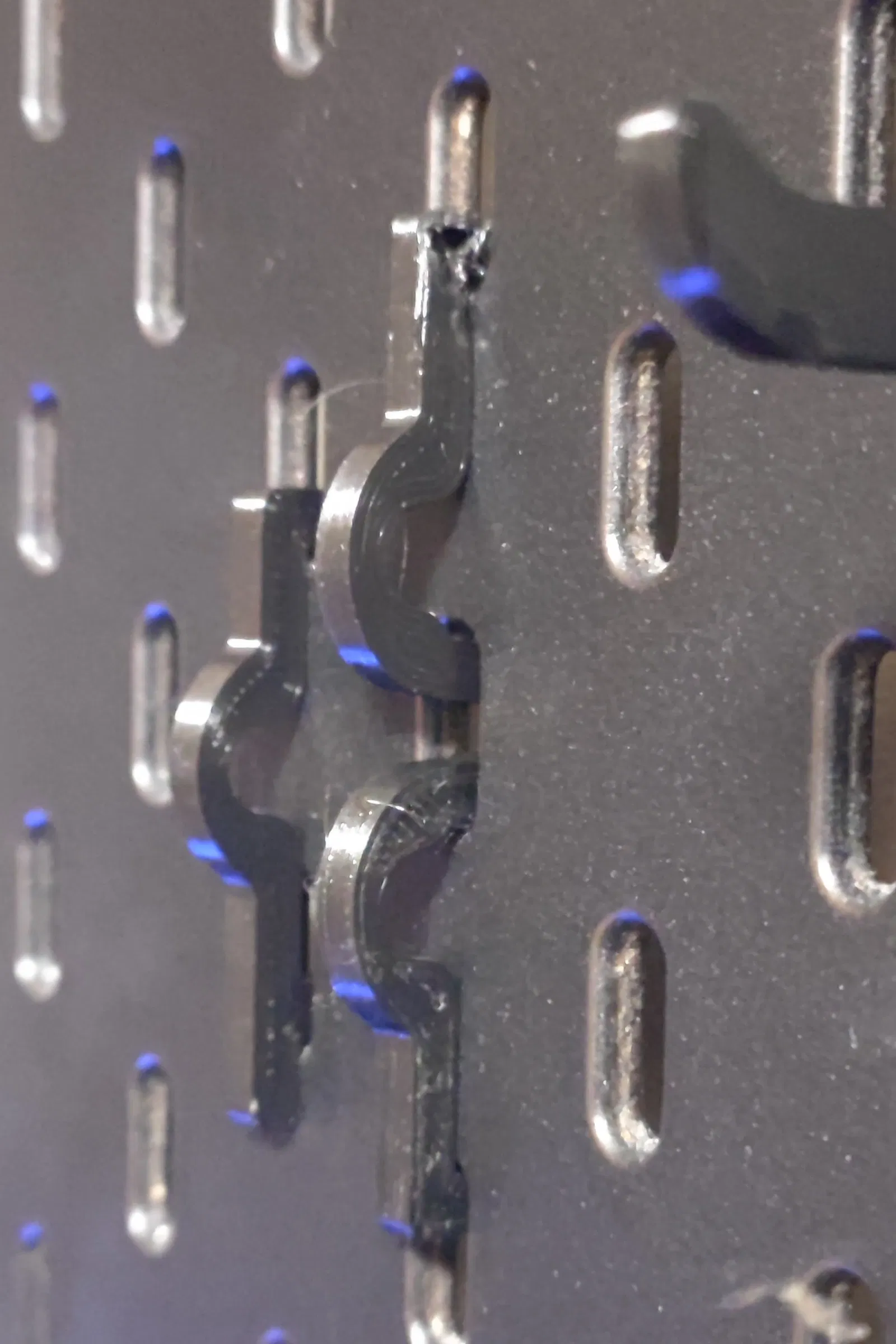 Người giữ cáp cho IKEA Skadis được thiết kế để giữ cáp được giấu ngang phía sau bảng.