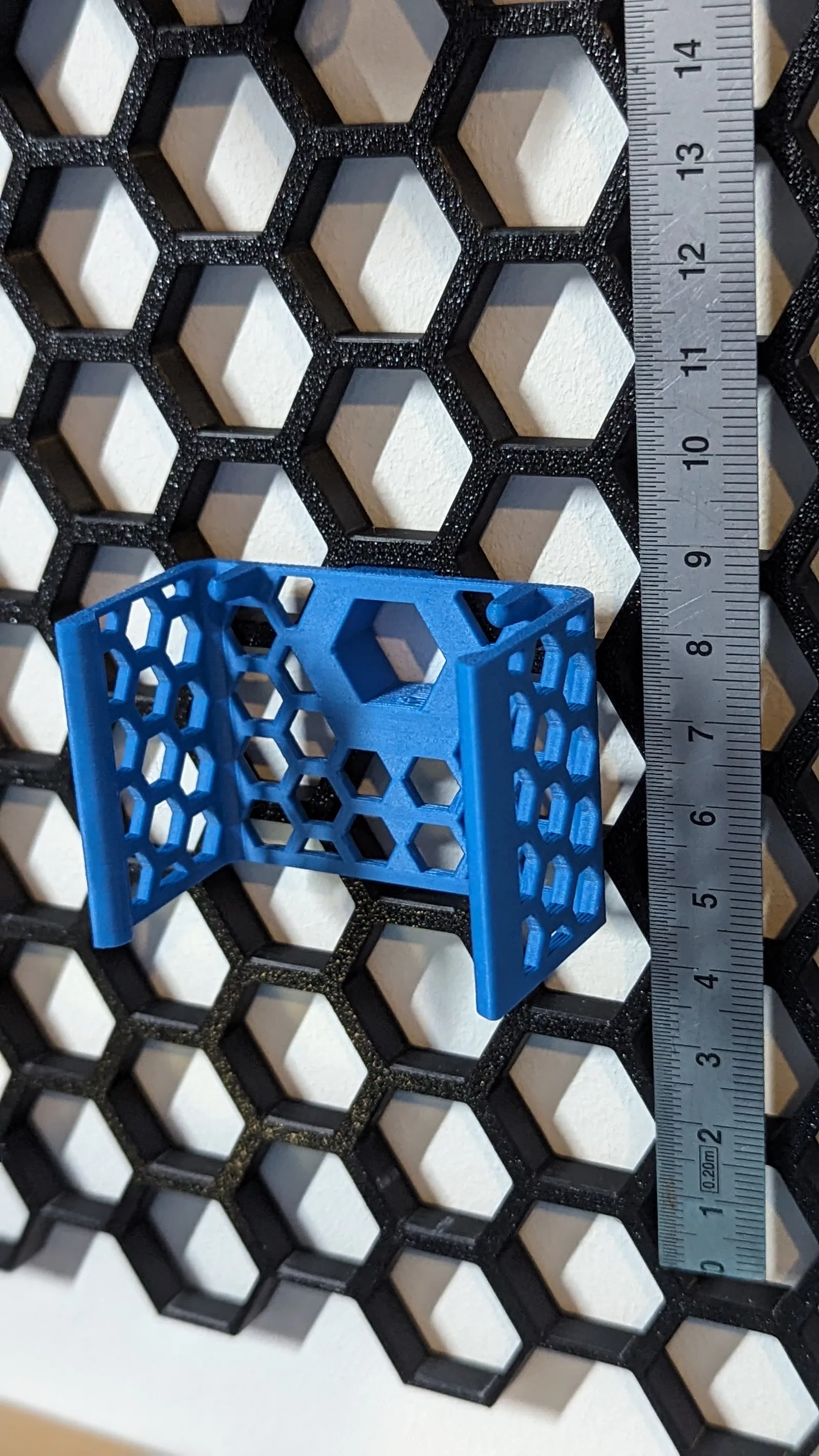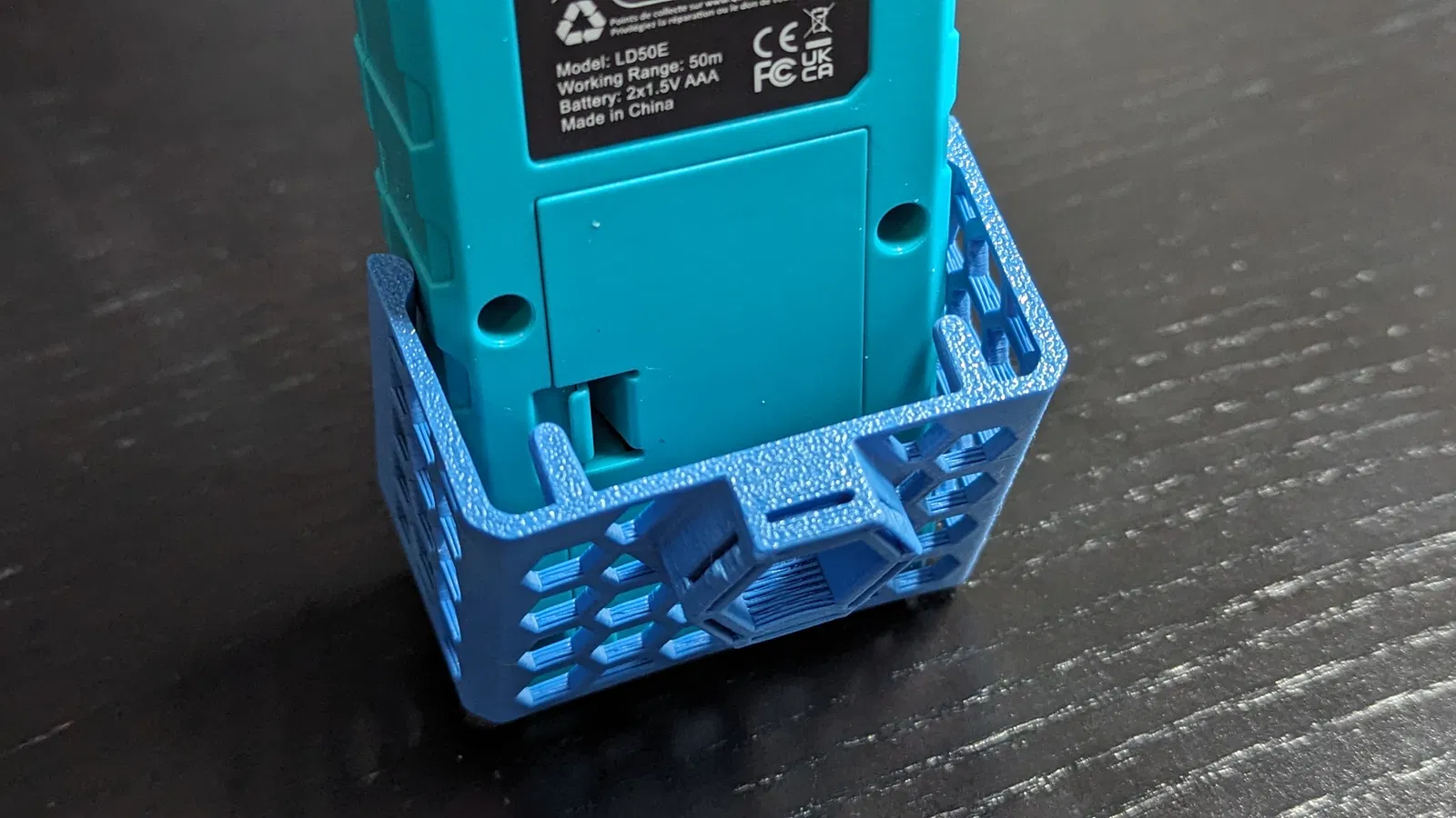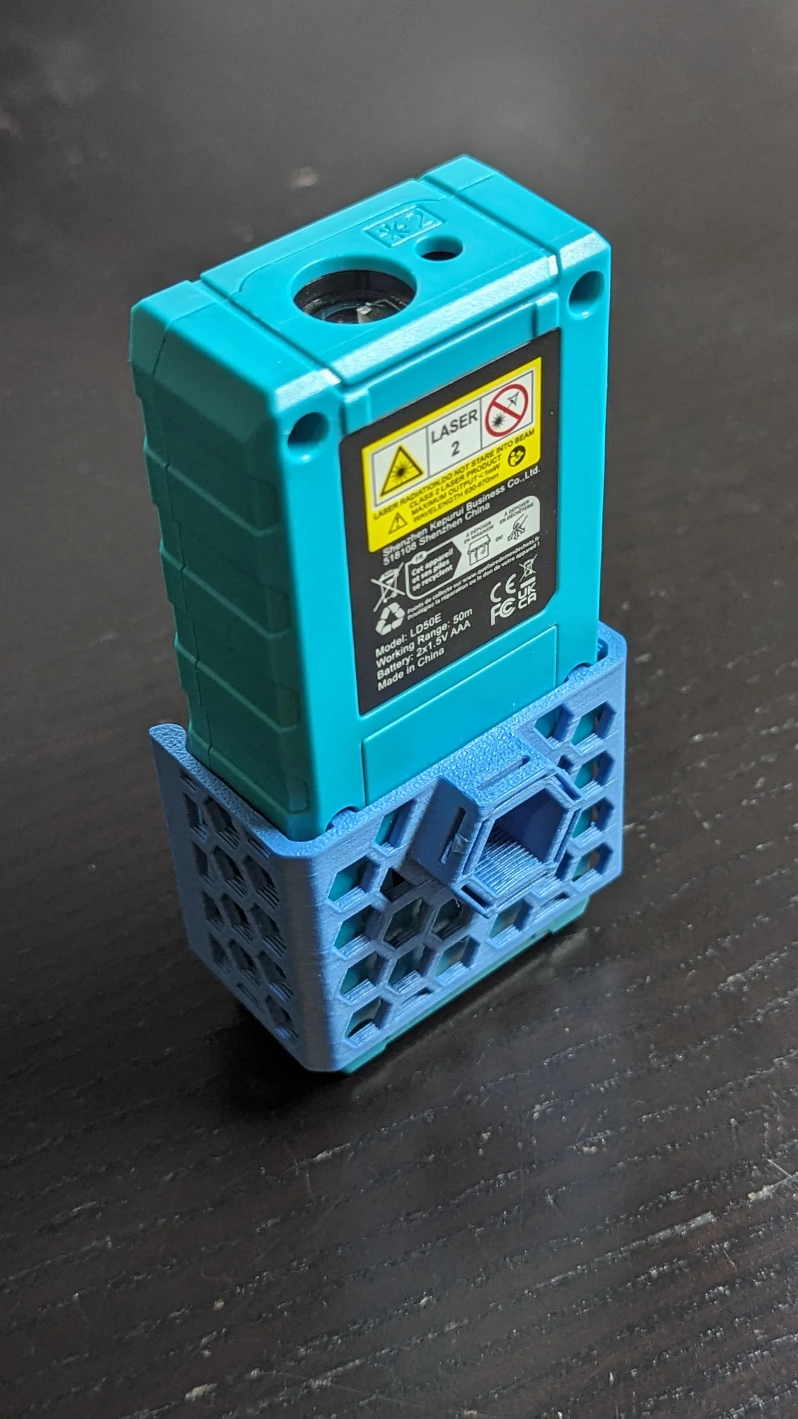 Đế giữ máy đo khoảng cách bằng laser Kiprim cho giá đỡ tường dạng tổ ong HSW. Thiết kế trượt phía trước, không cần overhead clearance, in dễ dàng không cần support.