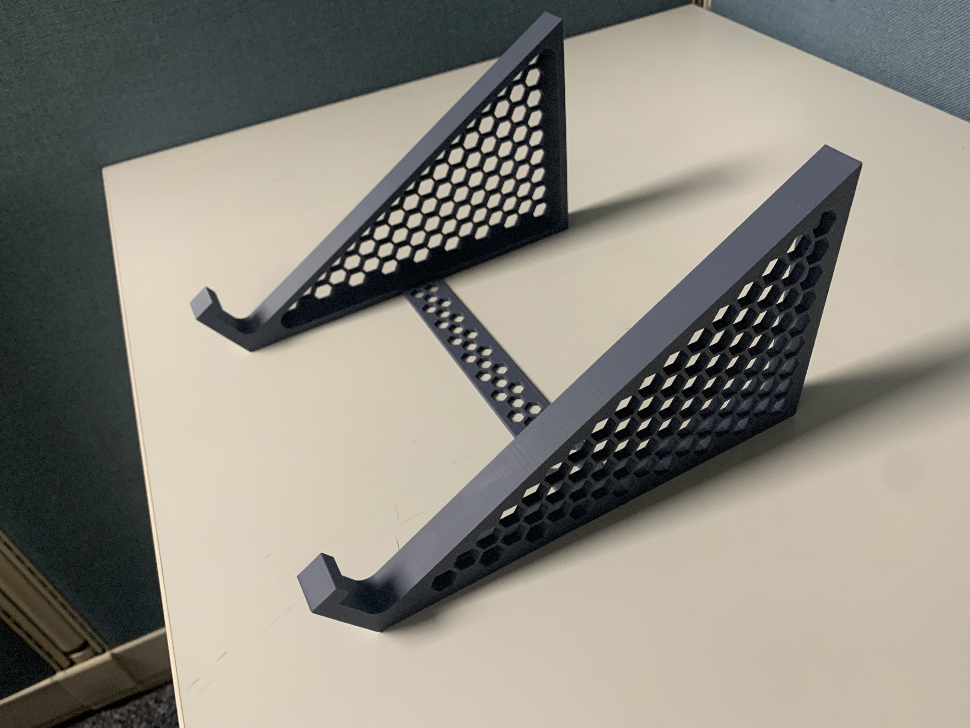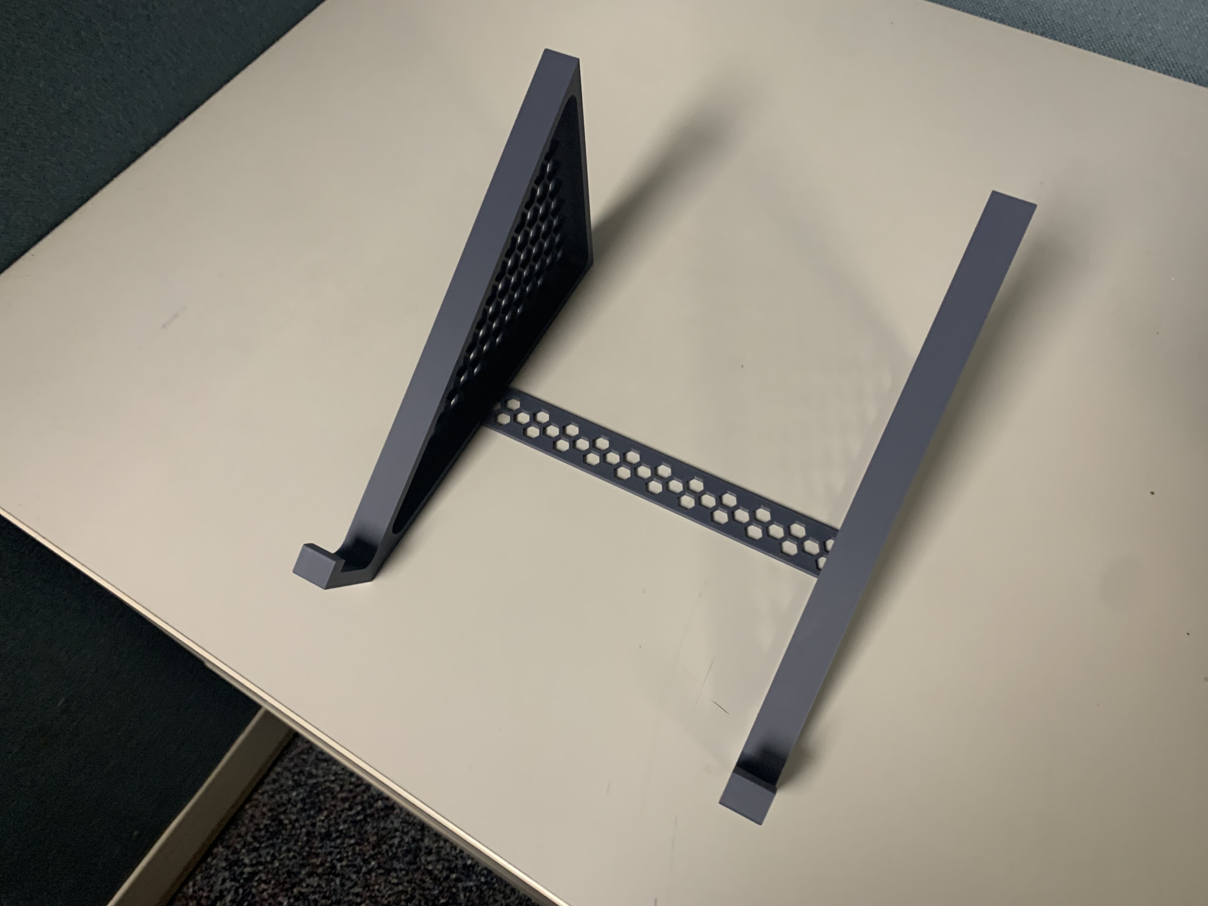 Tui gặp khó khăn trong việc tìm một cái đế laptop nào mà chắc chắn và vừa với cái laptop 15.6" dày cộp của tui. Tui tạo ra cái này để giải quyết vấn đề, mẫu này cứng cáp và ổn định hơn hầu hết các đế khác, cho phép dùng với laptop tới 17" và dày 1" mà không có vấn đề gì. Cái thanh giằng thì không bắt buộc nhưng nên có. Dùng keo để gắn thanh giằng nha.