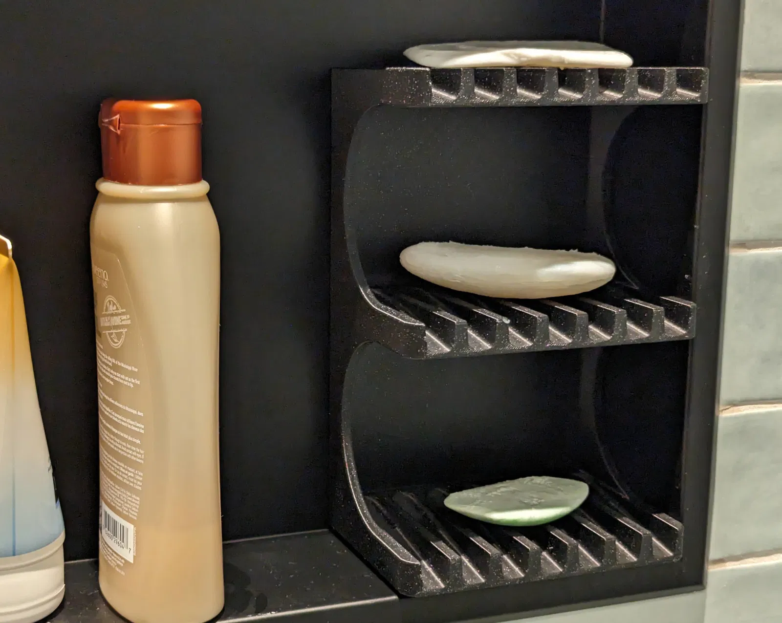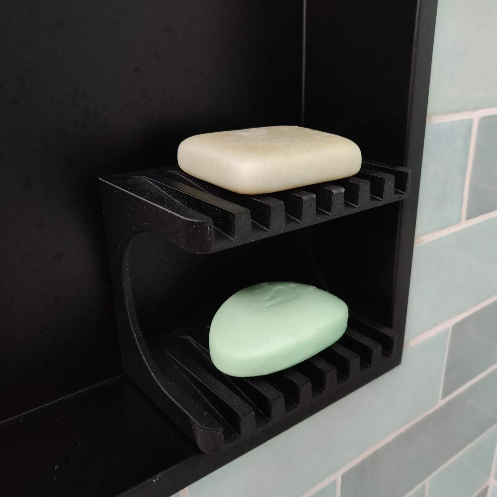 Đây là một cái khay đựng xà bông cứng cáp, có thể để được hai hoặc ba cục xà bông khác nhau. Tuyệt vời để tiết kiệm không gian phòng tắm nếu bạn dùng chung với ai đó thích xài nhiều loại xà bông!