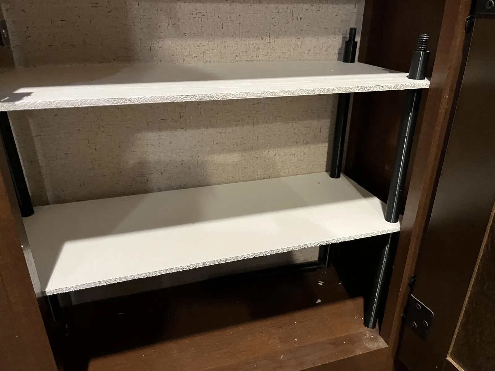 Tui lấy miếng gỗ dán dày 1/8" sơn lên rồi khoét 4 lỗ ở 4 góc, in mấy cái này ra là có liền mấy cái kệ cho tủ.