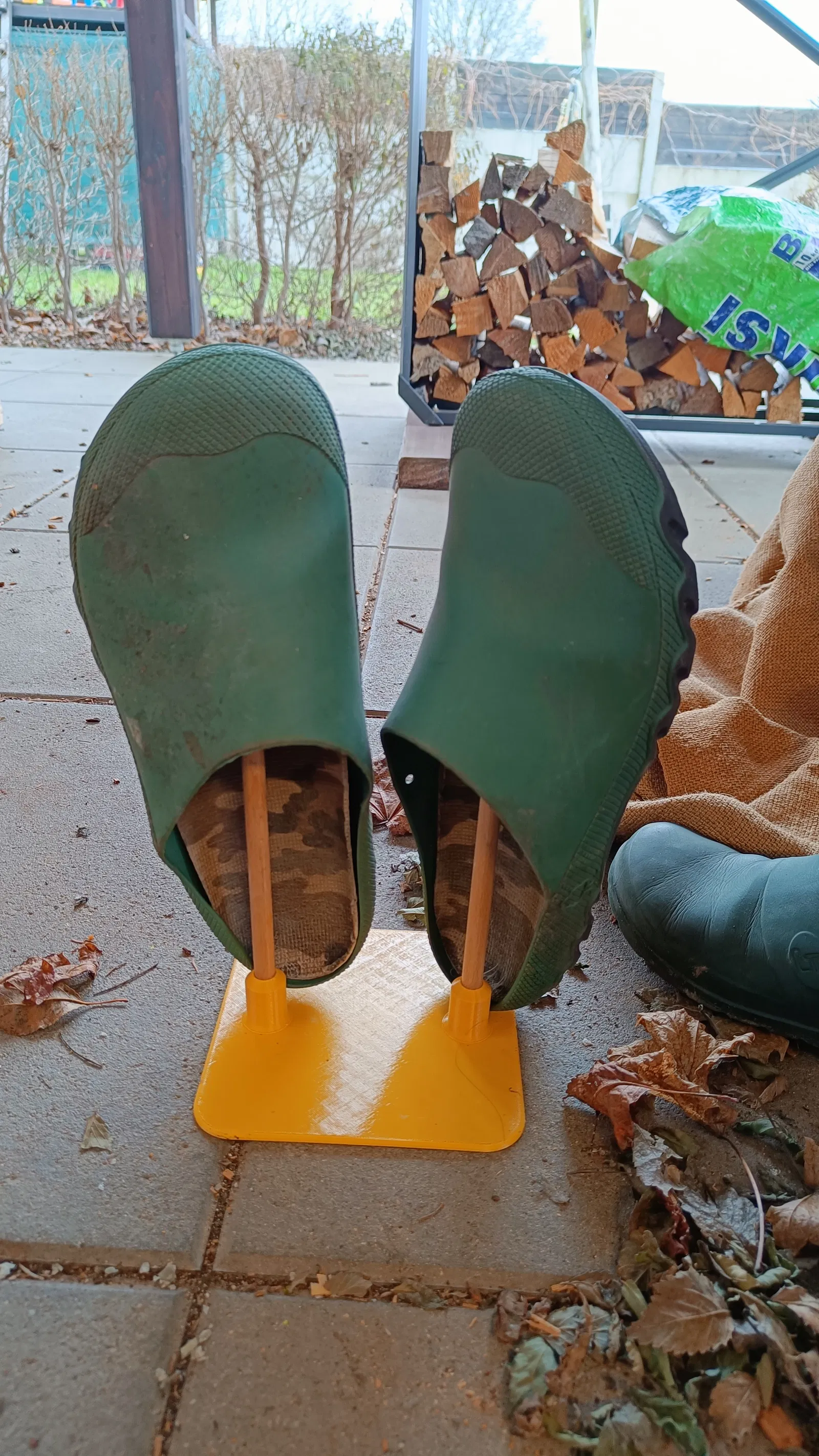 Mệt mỏi vì lá rụng và bừa bộn từ giày dép trên hiên nhà, tôi đã tạo ra cái giá đỡ đơn giản này. Dùng thanh ren 10mm.