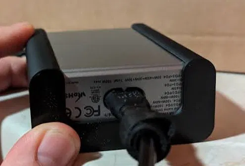 Giá đỡ cho củ sạc Satechi 165W, giúp bạn gắn gọn gàng dưới gầm bàn. Có thể dùng vít hoặc băng keo để cố định. Nên in bằng PETG hoặc ASA/ABS để chịu nhiệt tốt hơn PLA.