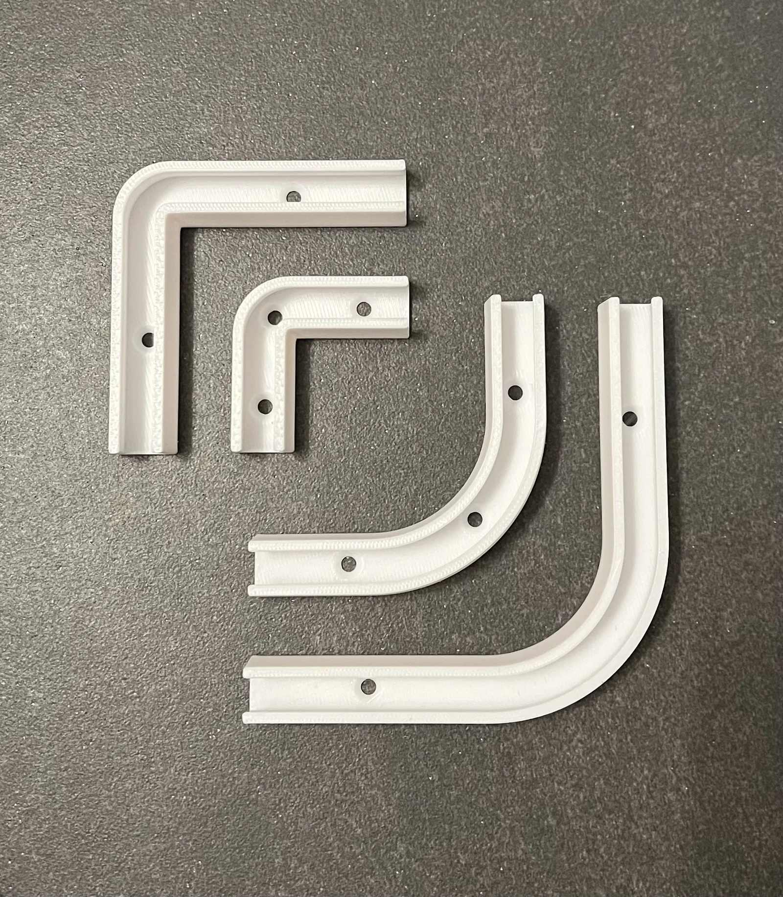 Bốn khúc cua 90 độ cho dải đèn LED Govee Phiên bản ngắn có phần thẳng 25mm, phiên bản dài 50mm. Cái ít hẹp hơn có bán kính trong 25mm.
