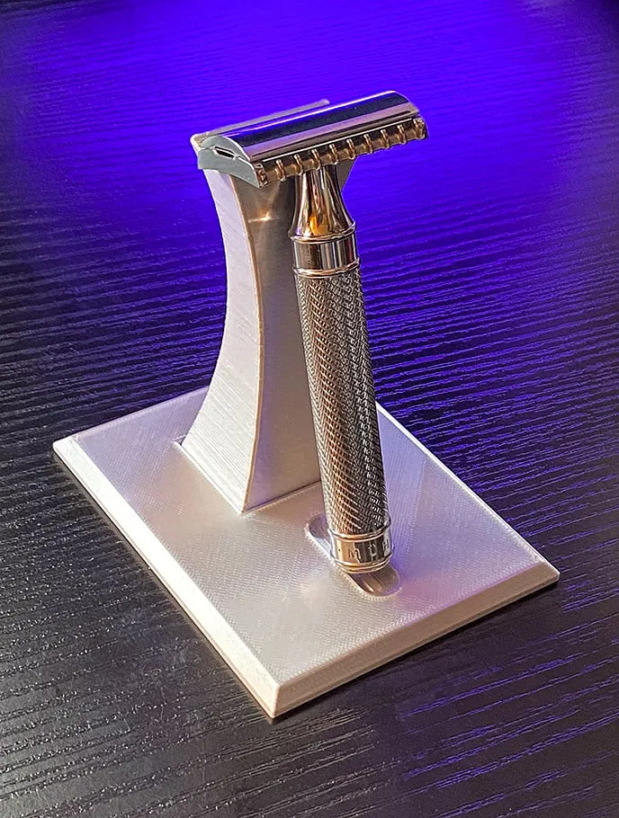 Chân đế cho dao cạo Muhle R41 Grande. Cái này in đẹp lắm, không cần raft hay support gì hết. Dùng nhựa PLA Prusament là bao ngon cho anh em nào thích đồ đẹp cho phòng tắm nha!