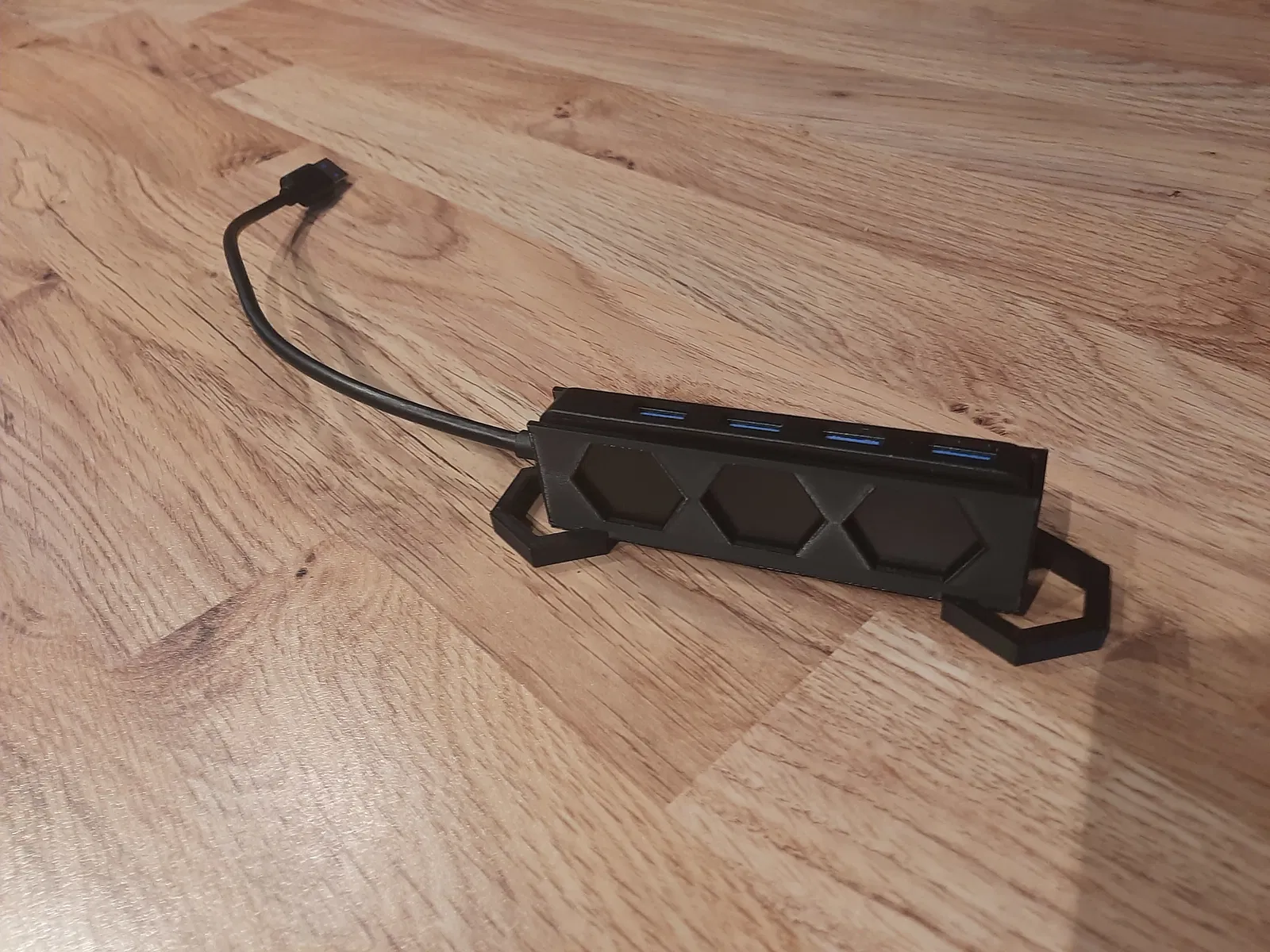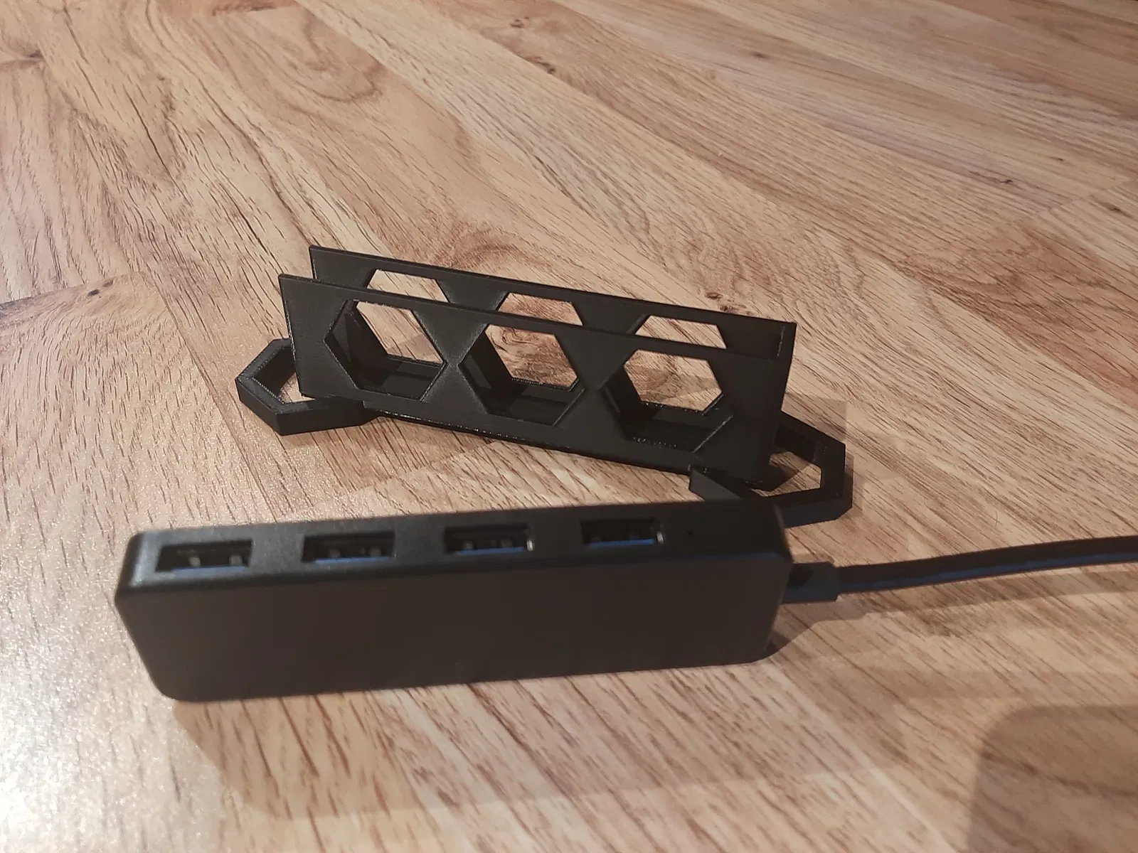 Thiết kế một cái đế cho USB hub của bạn vì khi đặt nằm phẳng thì hơi bất tiện khi sử dụng. Giúp việc cắm rút dễ dàng hơn. Khuyến khích bật supports khi in.