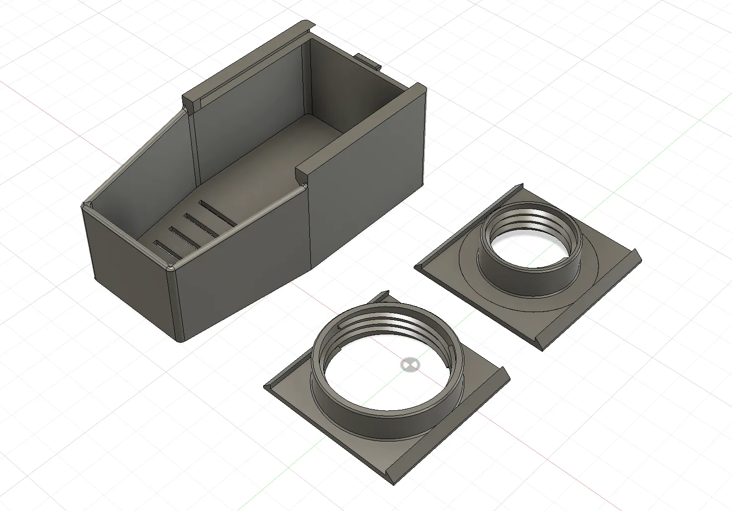 Tôi đã có một cái cho ăn tương tự trong quá khứ khi chỉ số bị đứt. Tôi quyết định thiết kế cái của riêng mình. Vì đây là điều tốt nhất để không giới hạn bản thân vào các thùng chứa thức ăn cho chim chuyên dụng, tôi quyết định sử dụng chai nhựa thông thường và đi theo thiết kế mô-đun để có thể thay đổi bộ chuyển đổi cho một cơ sở.
