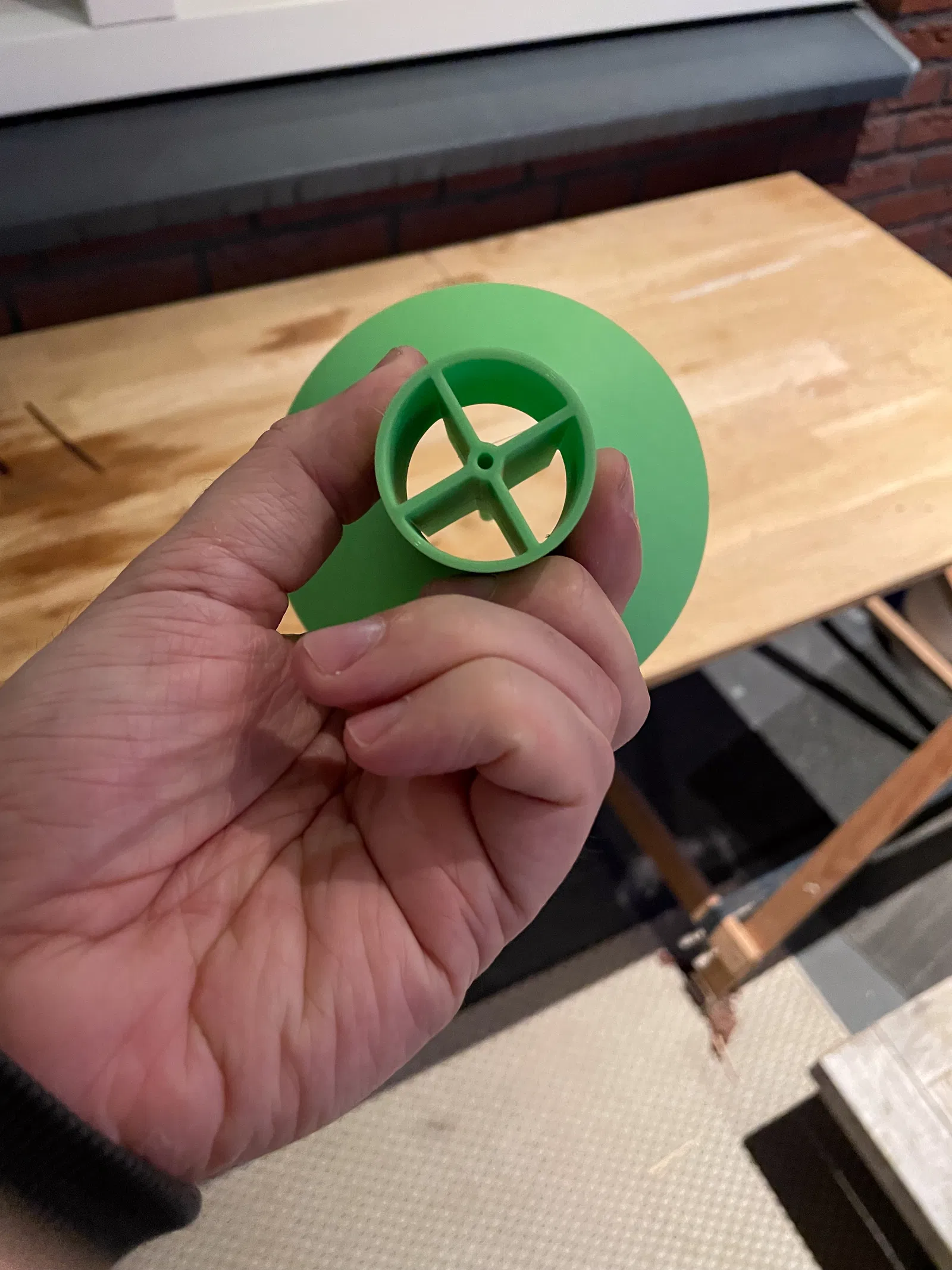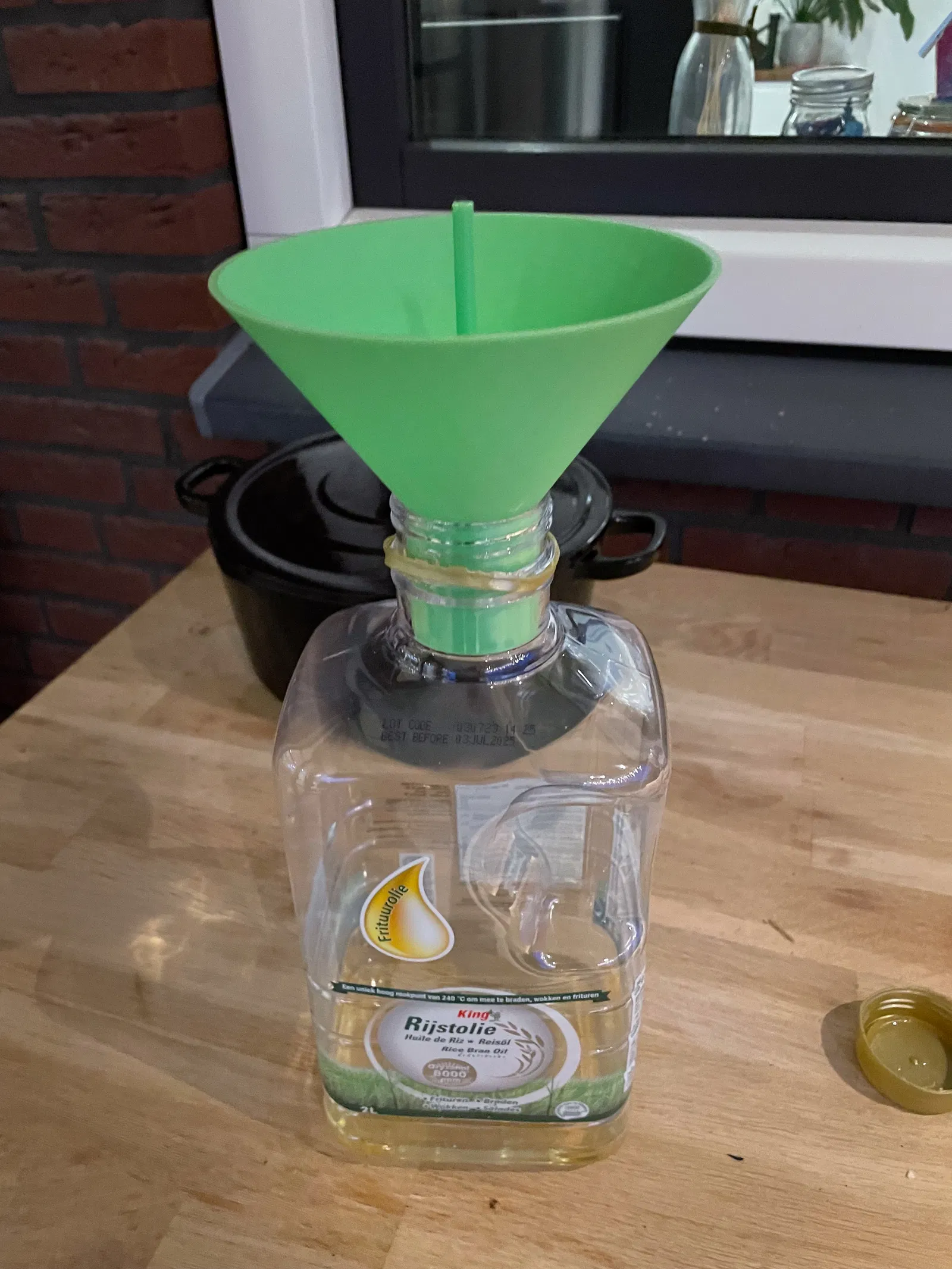 Tôi cần đổ dầu ăn lại vào chai, lỗ chai là 38,5mm nên tôi làm cái phễu 38mm có kênh khí để tránh phễu bị nghẽn khi nó bịt chai lại.