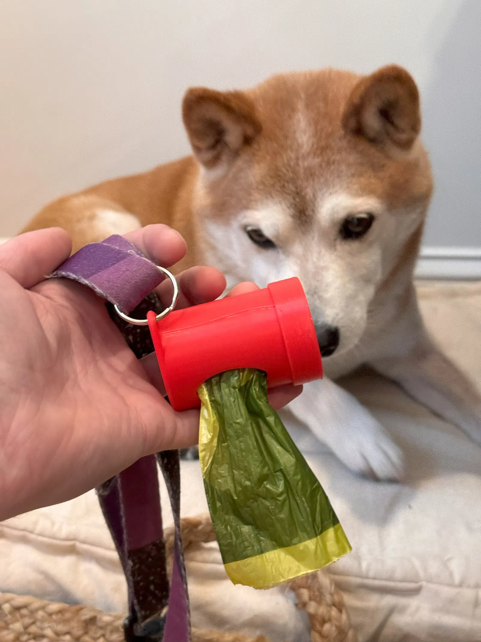 Cái này là cái đựng túi phân chó tiện lợi để bạn luôn mang theo cuộn túi trên dây dắt. Mình đã thử qua mấy phiên bản rồi và đang xài cái này với bé cún nhà mình mấy tháng nay. Nó nhẹ, chắc chắn, lại còn có móc khóa để gắn vào dây dắt hoặc vòng cổ cho chó nè!