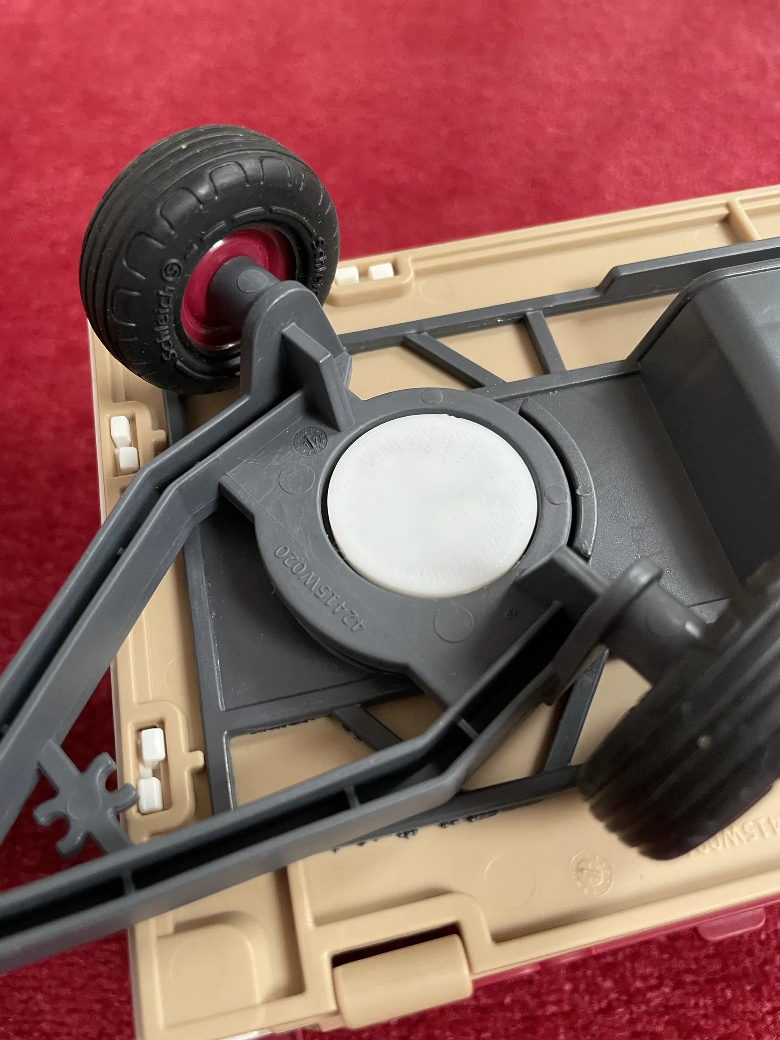 Tăng cường cho ngàm trục trước của rơ moóc "Wohnwagen" Schleich 42415. Nếu ba ngàm gài bị hỏng, hãy dùng bản in này để sửa chữa dễ dàng. Chỉ cần tháo ngàm cũ và lắp bộ phận mới vào.