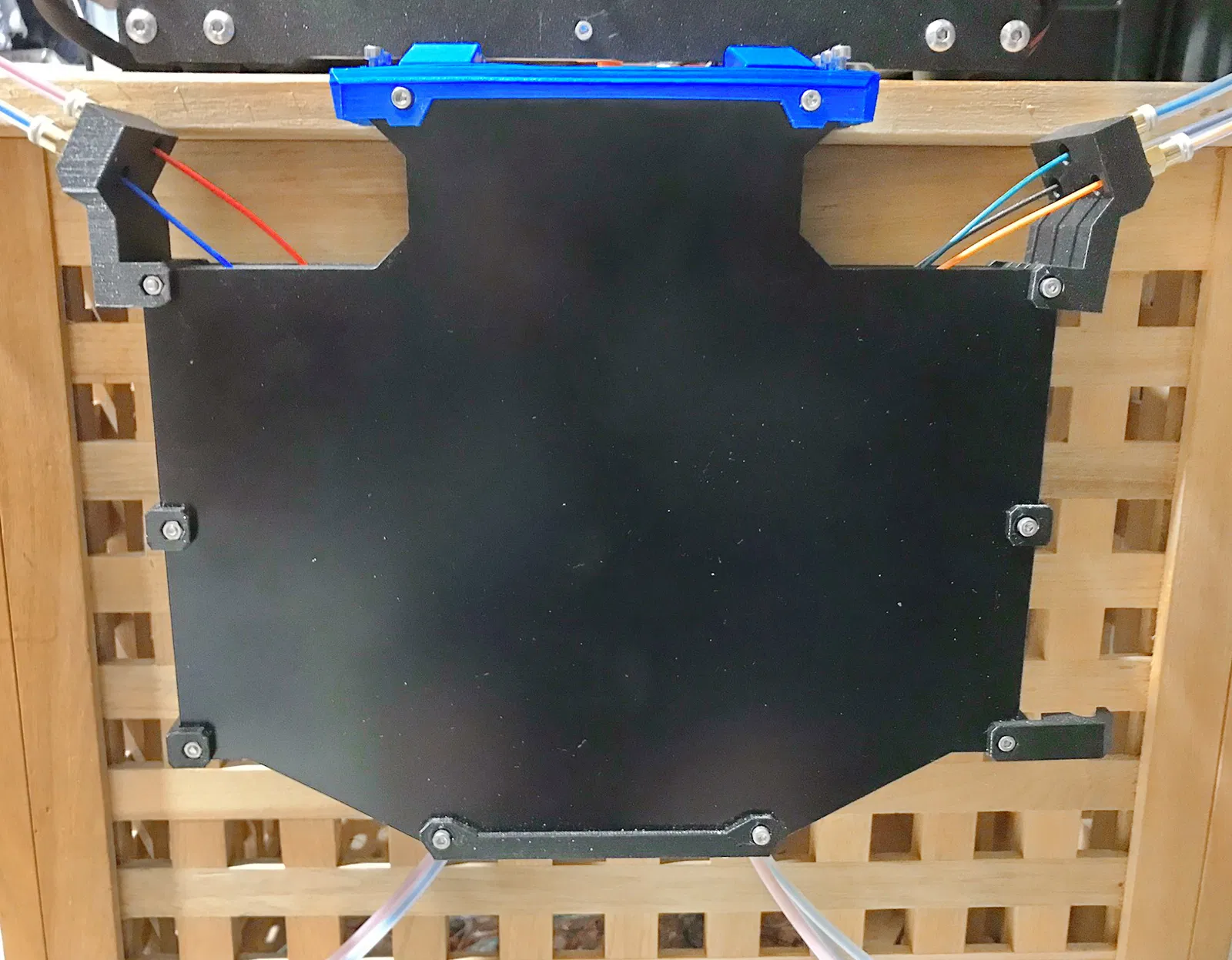 Cái giá đỡ vuông góc (màu xanh trên ảnh) là một phụ kiện không thiết yếu, nhưng rất thực tế, bạn có thể tìm thấy nó tại đây: https://www.thingiverse.com/thing:3617984