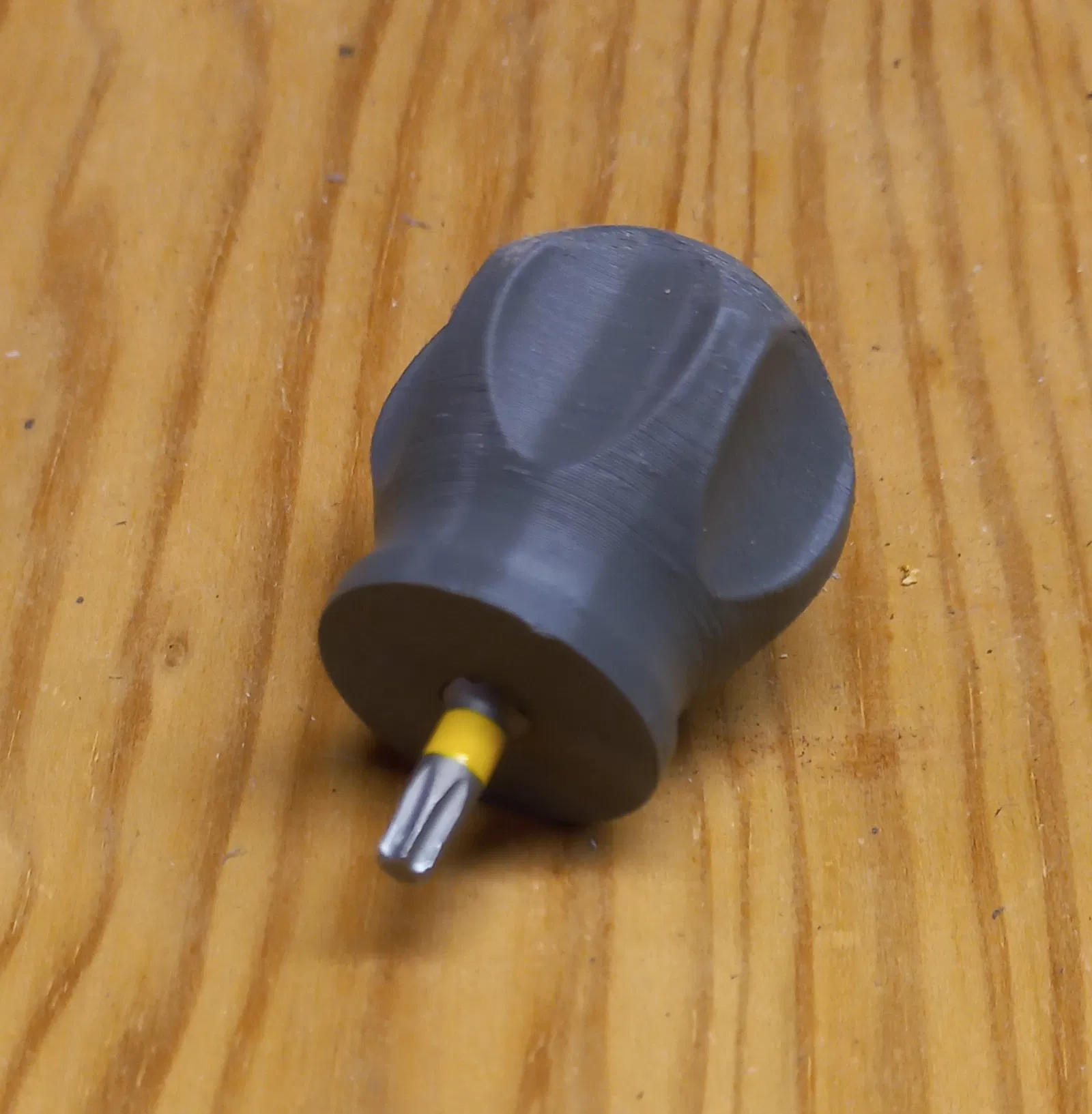 Tua vít bé tí để xài đầu bit ở mấy chỗ khó nhằn. Hỗ trợ đầu bit 1/4" (6.35mm) và có khe nhét nam châm. In xong không cần keo, chỉ cần thêm pause trong slicer là xài được liền, tiện lợi ghê.