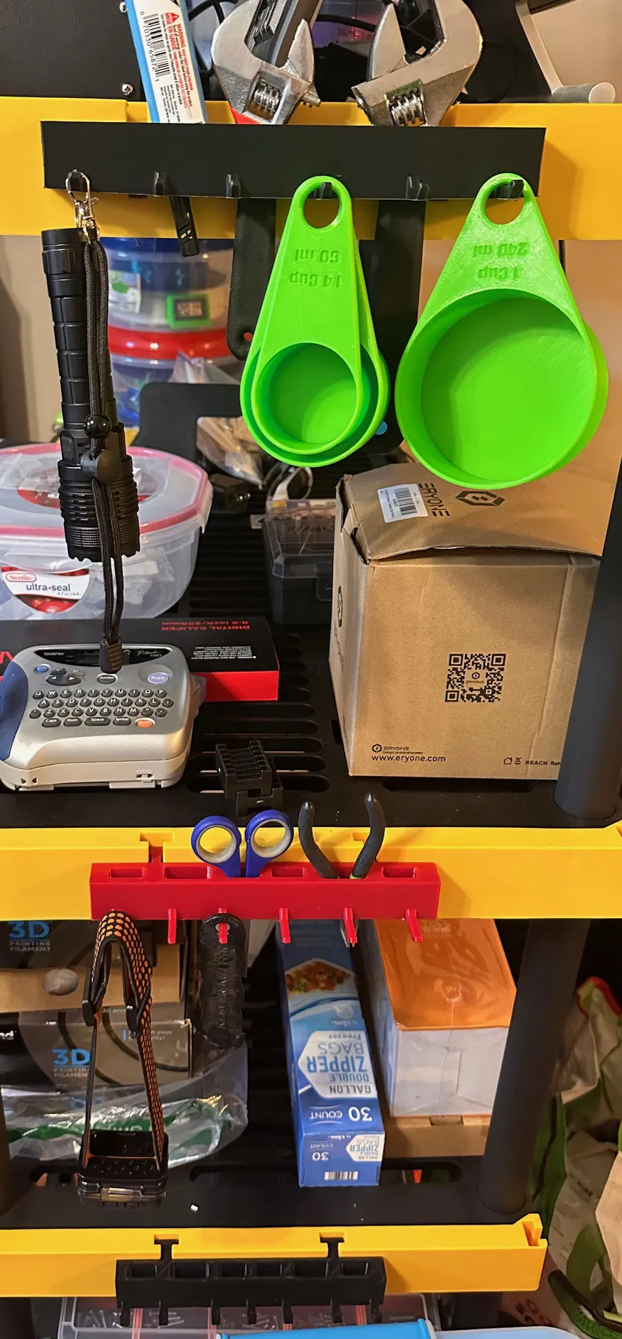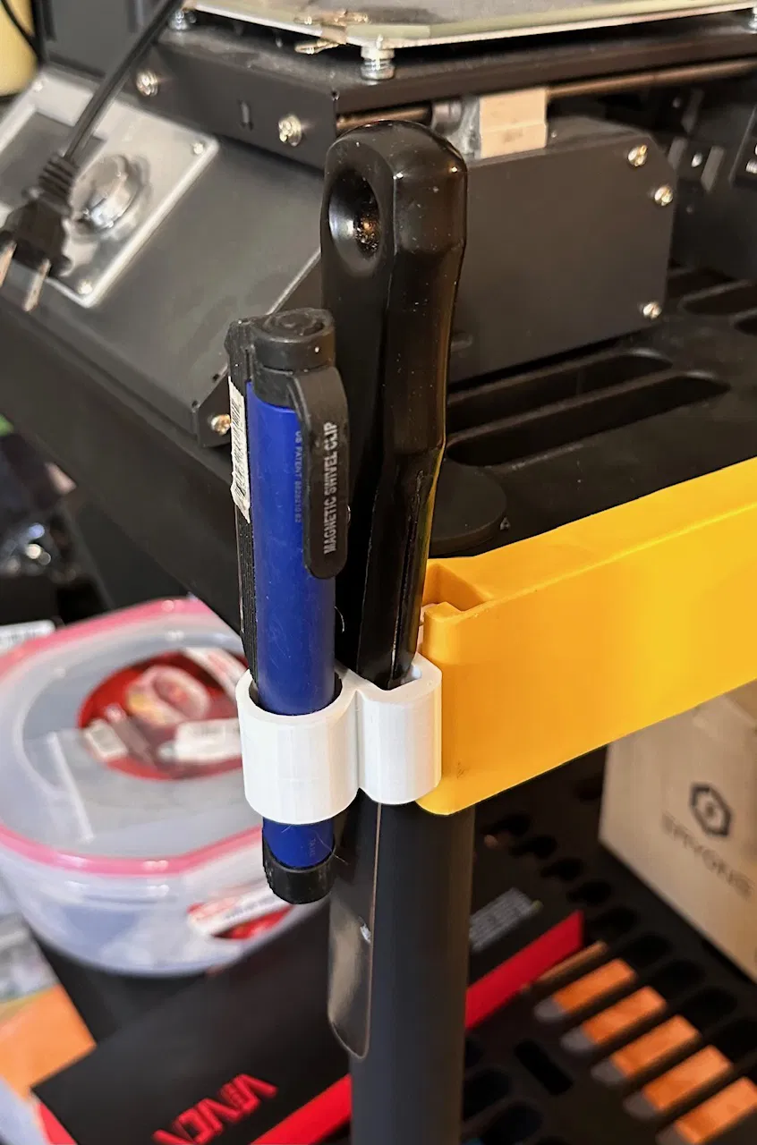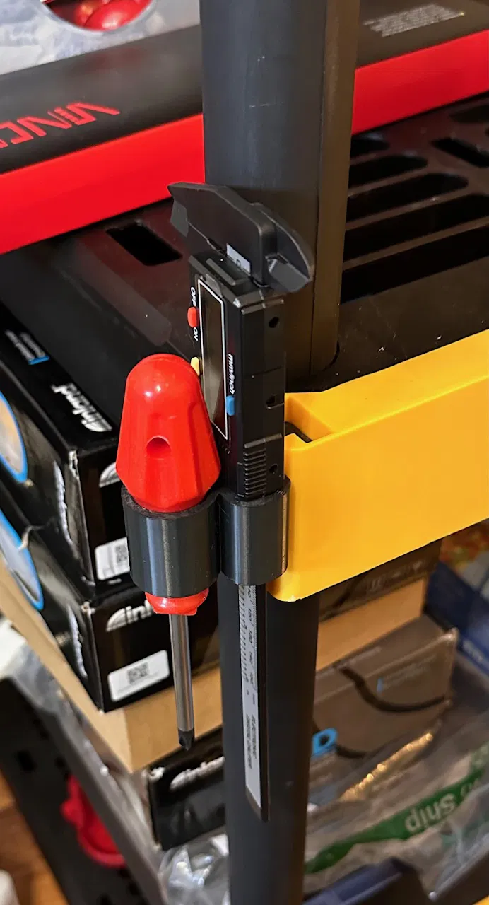 Giá đỡ dụng cụ được thiết kế để gắn vào các khe kết nối đa kệ trên đầu mỗi hàng kệ lưu trữ Đen và Vàng. Lựa chọn tuyệt vời để giữ các dụng cụ như kìm, kéo, tuốc nơ vít, v.v. In bằng PETG, ASA hoặc ABS cho độ bền tốt.