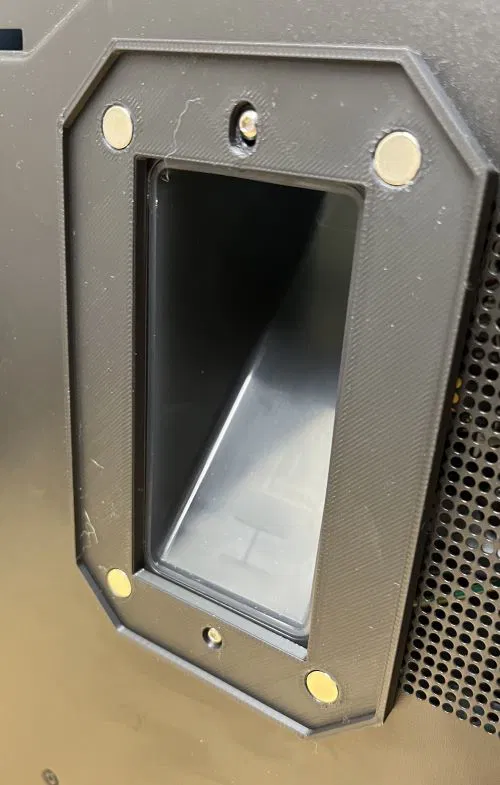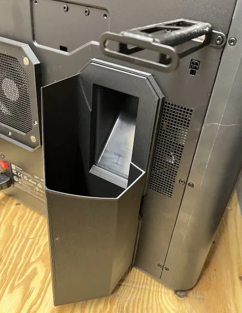 Máng/thùng đựng chất thải có đế nam châm, gắn trực tiếp vào mặt sau máy in P1S, có khoảng trống cho cuộn dây. Có tùy chọn giá đỡ nam châm để căn chỉnh thùng tốt hơn. In không cần support.