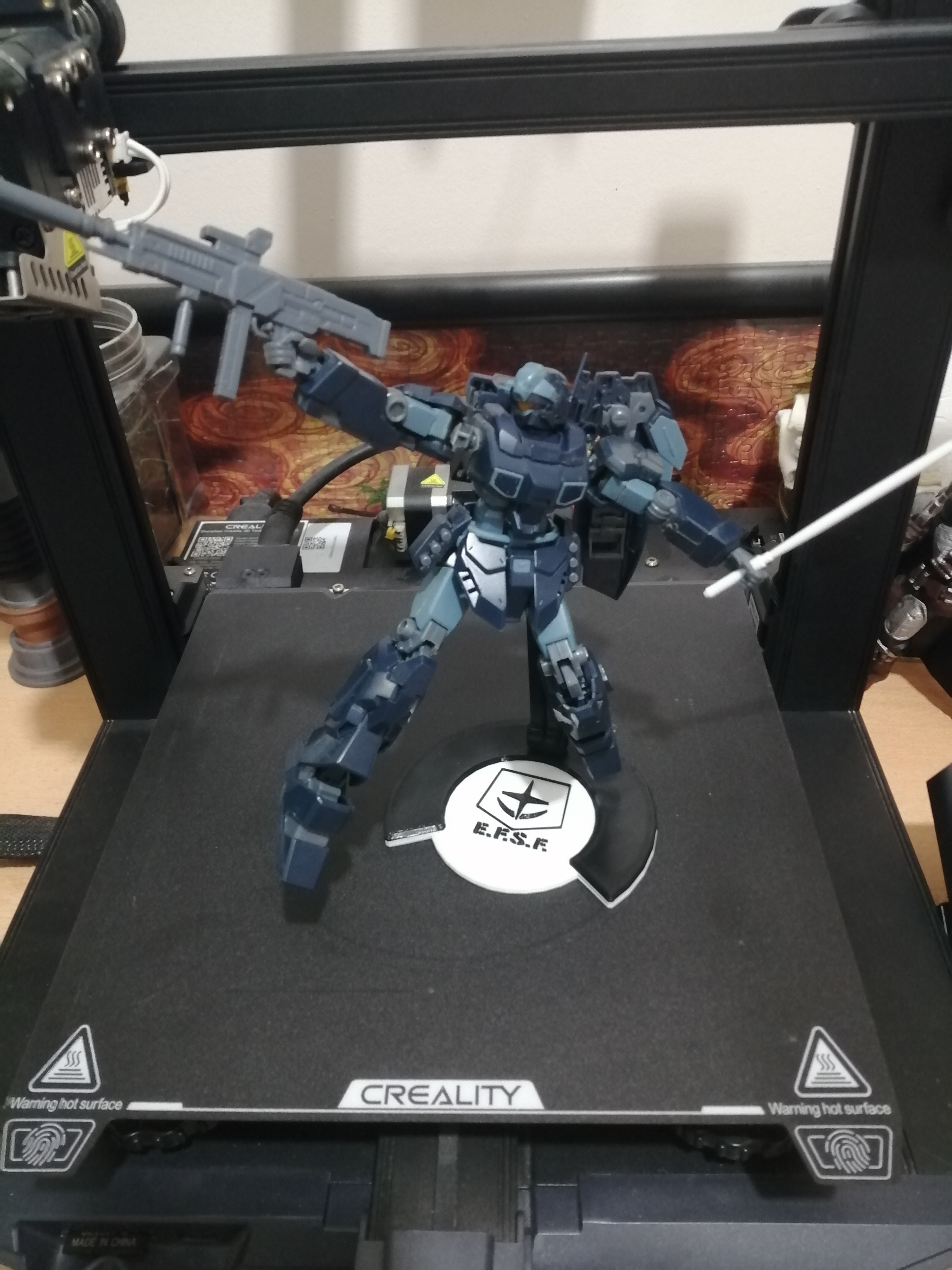 Đây là mô hình đế Gundam được làm thủ công, sử dụng đế trưng bày Mini 13 và có in logo của lực lượng E.S.F.S. cùng Zeon. Một món đồ không thể thiếu cho người hâm mộ gunpla và Gundam.
