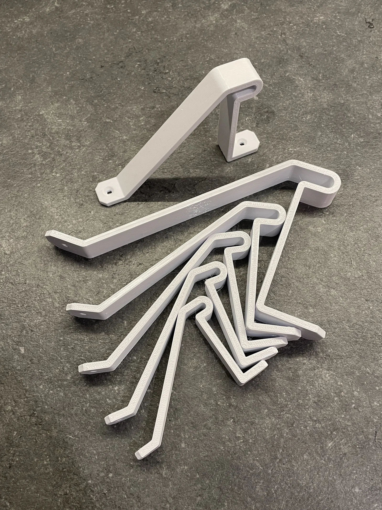 Móc treo được thiết kế riêng để treo thang nhôm lên tường, nhưng cũng có thể dùng cho nhiều mục đích khác. Thiết kế đa kích thước, có thể tùy chỉnh theo tham số. Tải file Fusion 360 về để điều chỉnh độ sâu, chiều rộng, độ dày và góc chân cho phù hợp.