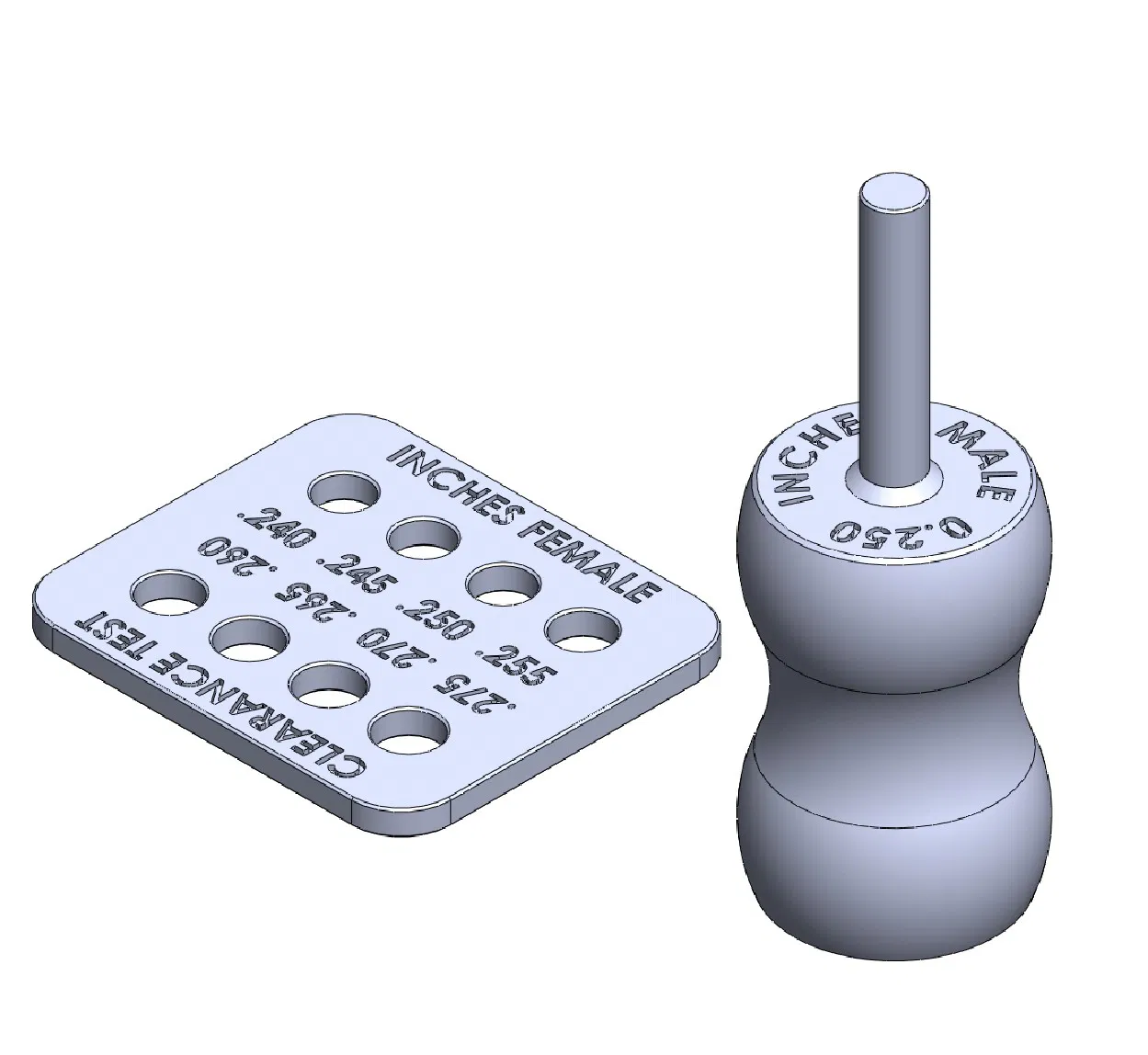 Đây là một cái chốt 0.25 inch và một tấm thẻ có các lỗ với đường kính từ 0.240 đến 0.275 inch, tăng dần 0.005 inch. Cái này có thể dùng để giúp xác định lượng khoảng hở (clearance) phù hợp để đạt được độ khít mong muốn.
