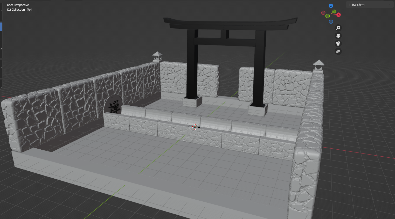 Cái cổng torii thì dựng lên trên cái trụ trước cửa cổng, còn cái cầu thì đặt lên trên cát.