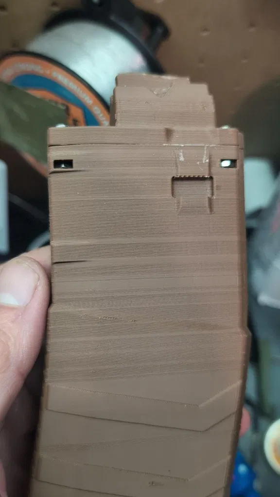 Chỉnh sửa nhỏ cho băng đạn AR15 22LR, sử dụng phương pháp in đai ốc thay vì insert nhiệt. Phiên bản in ASA chống cong vênh, tối ưu chiều cao lớp và hỗ trợ cho chi tiết. In trên Ender-3 Max với infill 10%.