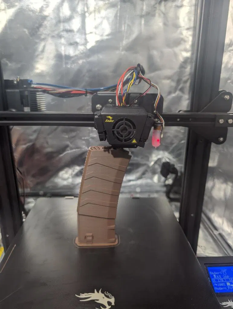 Tôi chỉ in bằng ASA vì nơi tôi sống có nhiệt độ cực cao và PLA vô dụng ngoài trời từ tháng 2 đến tháng 11. Trong ảnh, bạn sẽ thấy có viền trên bản in của tôi, vì ASA dễ bị cong vênh khỏi bàn in. Nếu bạn gặp sự cố về độ bám dính, bạn sẽ cần sử dụng viền cho thân băng đạn.