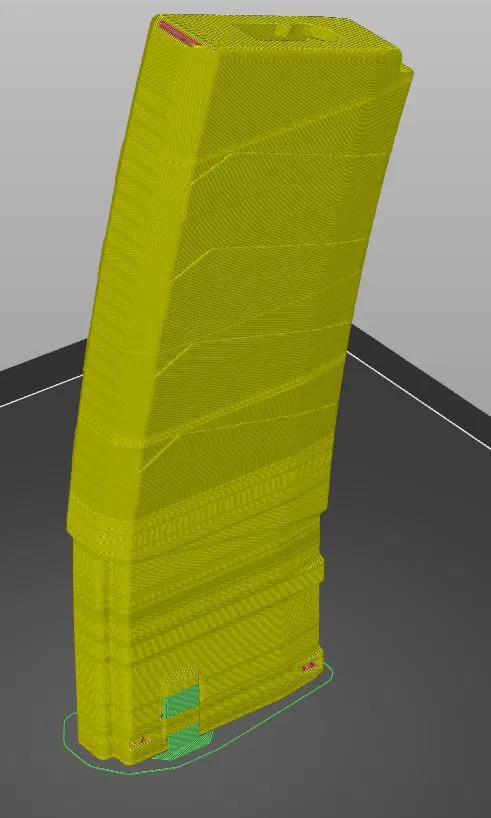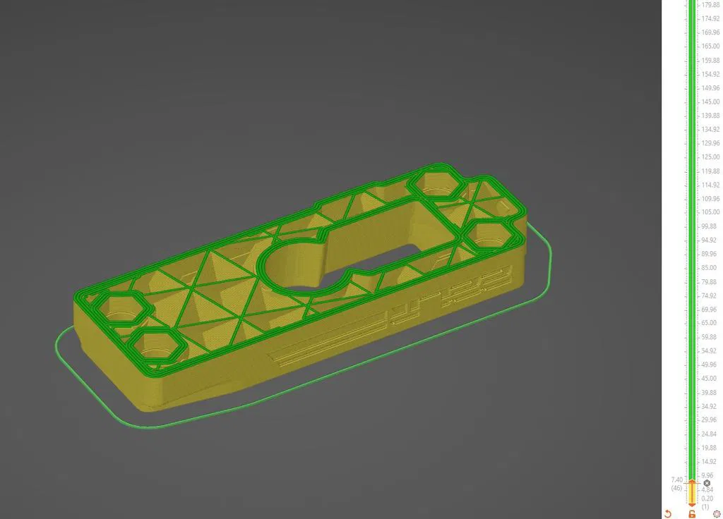 Hatchbox ASA mà tôi đang sử dụng không phải là loại tốt nhất cho việc in bridge, nên tôi đã bật hỗ trợ cho cửa sổ chốt băng đạn bằng cách sử dụng tính năng tô hỗ trợ trên PrusaSlicer. Tất cả các phần còn lại đều in tuyệt vời với chiều cao lớp thích ứng/biến đổi được bật và đặt ở tỷ lệ 0.36.
