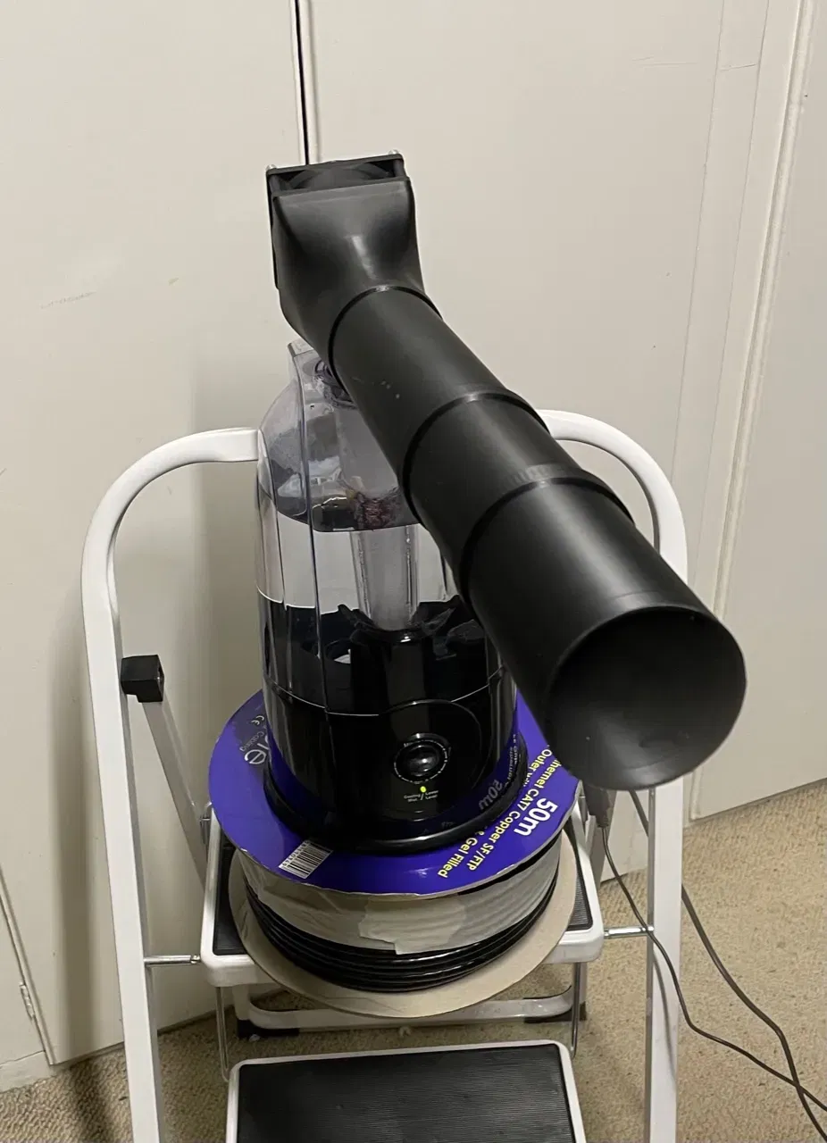 Cụm lắp ráp này phù hợp với một máy phun sương/độ ẩm cho terrarium mà tôi đã mua, để điều chỉnh nó cho nhiệm vụ làm mát văn phòng. Vì (tin tức nóng hổi) năng lượng đã cao hơn một chút gần đây, tôi đã cố gắng tìm kiếm những giải pháp tiết kiệm hơn cho điều hòa không khí. Điều hòa không khí là một thứ thiết yếu trong không gian mái nhà cách nhiệt kém mà tôi gọi là văn phòng tại nhà, nhưng, thực ra, tôi đã không sử dụng nó suốt mùa hè vì thiết bị này. Điều này được lấy cảm hứng từ sự xuất hiện của các loại máy làm mát bay hơi sử dụng siêu âm để tạo ra sương mù, được thổi vào bạn, đó là một làn sương mù mịn, nó không làm bạn ướt vì nó bay hơi ngay lập tức từ bạn… nhưng nó va vào bạn, và bay hơi, và bạn đang trong luồng gió của quạt, vì vậy nó có tác dụng làm mát đáng kể. Điều về các loại máy làm mát mà bạn có thể mua cho mục đích này, là chúng đơn giản là không đủ nghiêm túc để tạo ra sự khác biệt lớn hơn một chút, nhưng khái niệm thì tốt, vì vậy tôi đã quyết định xem tôi có thể làm gì nếu tôi điên cuồng hơn một chút… thực ra tôi có thể đã điên rồ hơn nhiều, và tôi sẽ rất thích nếu ai đó đưa điều này lên một cấp độ mới… nhưng điều này thì dễ, chỉ cần một nỗ lực thiết kế tối thiểu và một vài mua sắm ngoài cửa hàng, và điều đó đã đủ. Tối thiểu, bộ chuyển đổi là một bản in, mà bạn có thể bắt vít một quạt 80mm vào và đặt lên trên đơn vị phun sương/độ ẩm của terrarium, với một dây thun để giữ cho nó chặt (trong các bức ảnh bạn có thể thấy tôi đã sử dụng một dây thun trắng rộng mà tôi có, có vẻ hoàn hảo cho công việc này). Quạt USB của tôi có thể điều chỉnh tốc độ, nhưng tôi không nghĩ điều đó quá quan trọng. Tôi đã làm ống mở rộng 20cm và 10cm để vừa khít vào đầu, hữu ích nếu bạn muốn đặt nó ở phía bên kia của bàn, thổi qua bàn vào bạn, nhưng không làm mất phương hướng và làm mát mọi thứ ở phía sau bàn, nhưng không quá nhiều vào bạn. Tùy thuộc vào trọng lượng của quạt của bạn và dây thun bạn sử dụng, bạn có thể hoặc không thể đạt được 40cm không có hỗ trợ như tôi đã làm trong các bức ảnh của mình. Tôi đã in cái này bằng ABS đen sử dụng các lớp chiều cao biến đổi, các ống mở rộng không cần hỗ trợ, nhưng bộ quạt thì cần, tốt nhất là in với đáy hình vuông xuống, và tôi đã sử dụng hỗ trợ cây, cái này hoạt động rất tốt. Máy phun sương/thiết bị tạo độ ẩm cho bể cá là một quạt là (hoặc một cái rất giống như vậy) và tôi đã sử dụng bu lông M4 dài 30mm. 35mm sẽ tốt hơn, nhưng 30mm là VỪA đủ cho quạt tôi mua với lưới đã được gỡ bỏ từ bên hông hướng vào trong, và đó là cái tôi có. Các lỗ được khoan 3. 9mm để cho phép một bu lông M4 có thể vặn vào nhựa, siết chặt chúng một cách đồng bộ. Tôi đã thêm một phiên bản với khớp nối hơi hẹp hơn cho bể cá, cho phép miếng đệm hiện có (đi kèm với một trong các bộ phận của bể cá) được gỡ bỏ và tái sử dụng, nó khá là một miếng đệm dày so với một dây cao su nên khớp nối phải được thu nhỏ một chút để nó vẫn vừa vặn với cái đó.