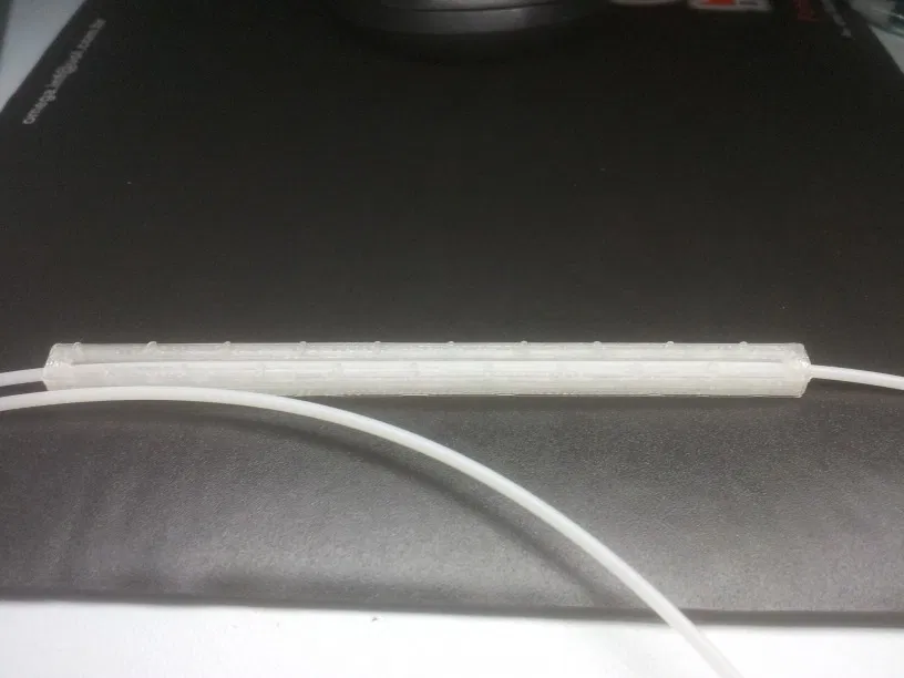 Cái dụng cụ hỗ trợ canh chỉnh extruder này là một cái đế giữ dây tóc, có các vạch chia mỗi 5mm.