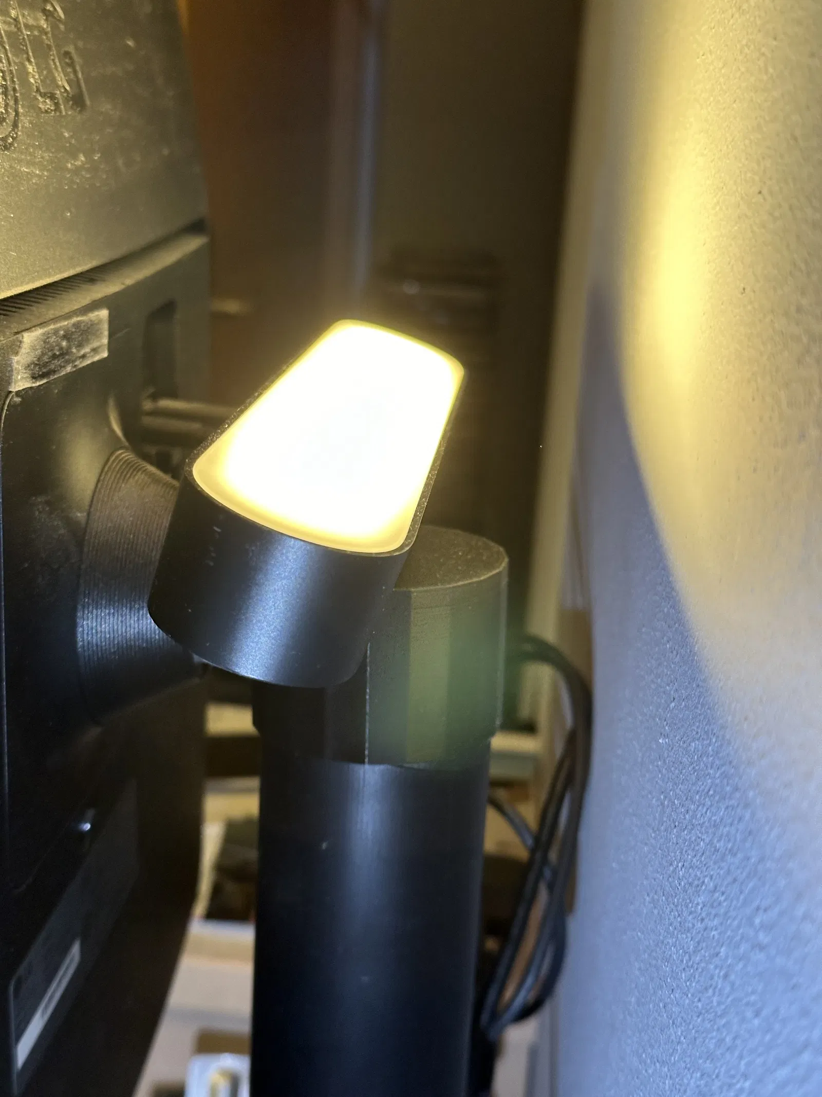 Giá đỡ đơn giản cho đèn Hue Play, gắn vào chân đế của màn hình. Thiết kế cho màn hình LG Ultrawide 35" nhưng có thể vừa với các màn hình khác có chân đế tương tự hoặc giống hệt.