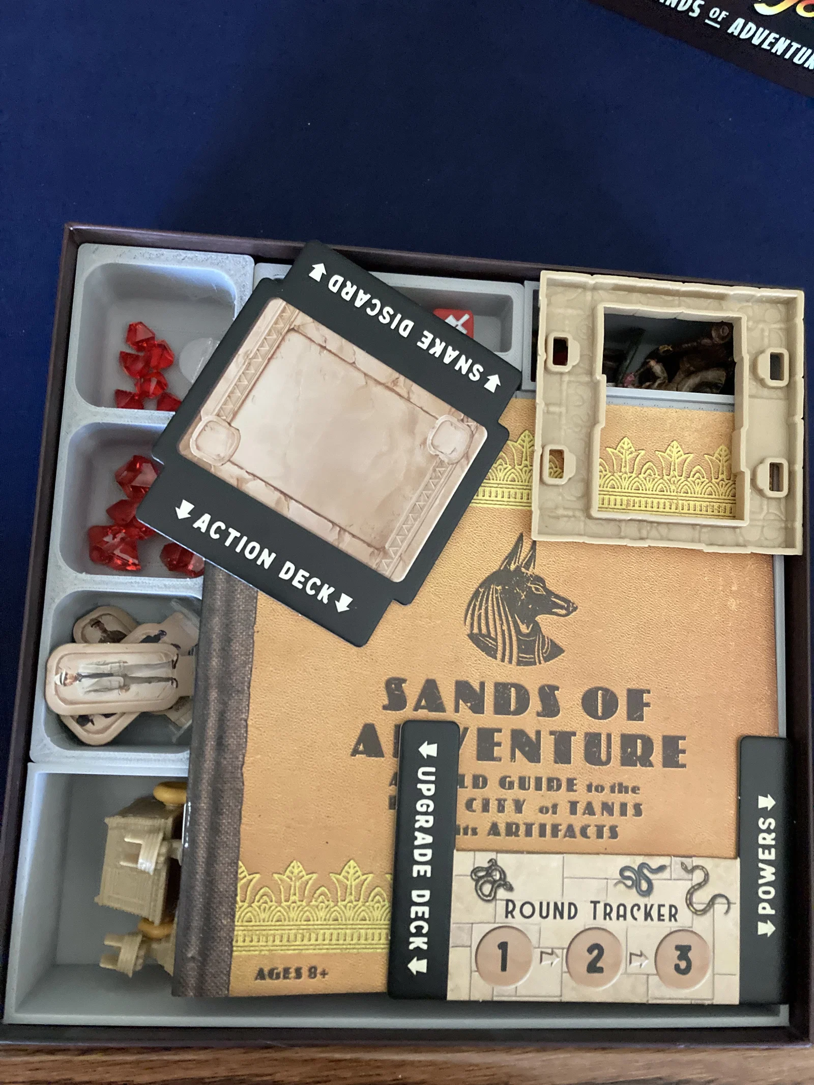 Bộ kệ đựng tối ưu cho bàn cờ Indiana Jones - Sands of Adventure, giúp bạn sắp xếp gọn gàng thẻ bài, xúc xắc, crystal, miniature và các phụ kiện khác. Thiết kế thông minh, dễ dàng in ấn với file STL và OpenSCAD đi kèm.