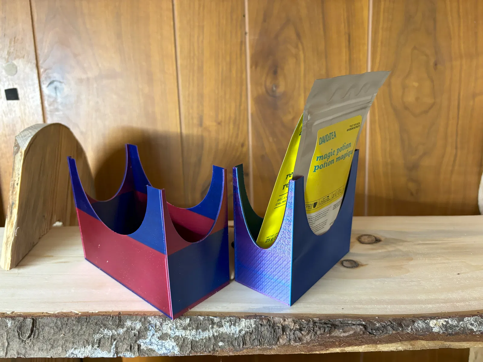 Hộp đựng để sắp xếp gọn gàng các túi trà/cà phê lớn 4 và 5 inch trong tủ bếp. Được thiết kế bởi David, người dùng đã tối ưu hóa kích thước để vừa với khay in và sử dụng PLA hai màu.