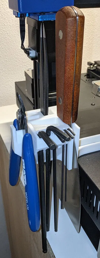 Một cái kẹp đồ nghề đơn giản, gọn gàng cho máy in 3D Artillery Genius, giúp bạn cất giữ các dụng cụ như bay gạt, kìm, nhíp, USB, cờ lê lục giác một cách ngăn nắp. File Stp có sẵn. In không cần supports, rafts với độ phân giải 0.2 và infill 25% bằng PLA là tốt nhất.