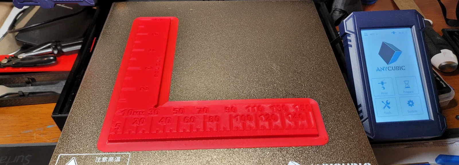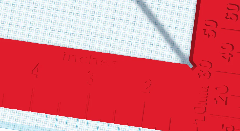 Tôi thiết kế cái này để hỗ trợ việc phác thảo ý tưởng và đo lường nhanh trong thực tế. Mỗi "vạch" nhỏ đại diện cho 1mm, sau đó các vạch tương ứng khác được ghi chú phía trên "vạch" tương ứng, ngoại trừ vạch 5mm thì cao hơn một chút so với vạch 1mm. Phần inch thì tự giải thích rồi (¼", ½", ¾", và 1" đến 6")