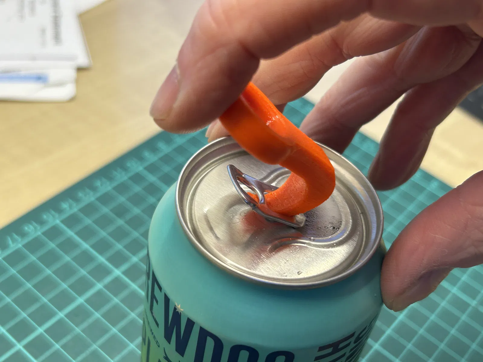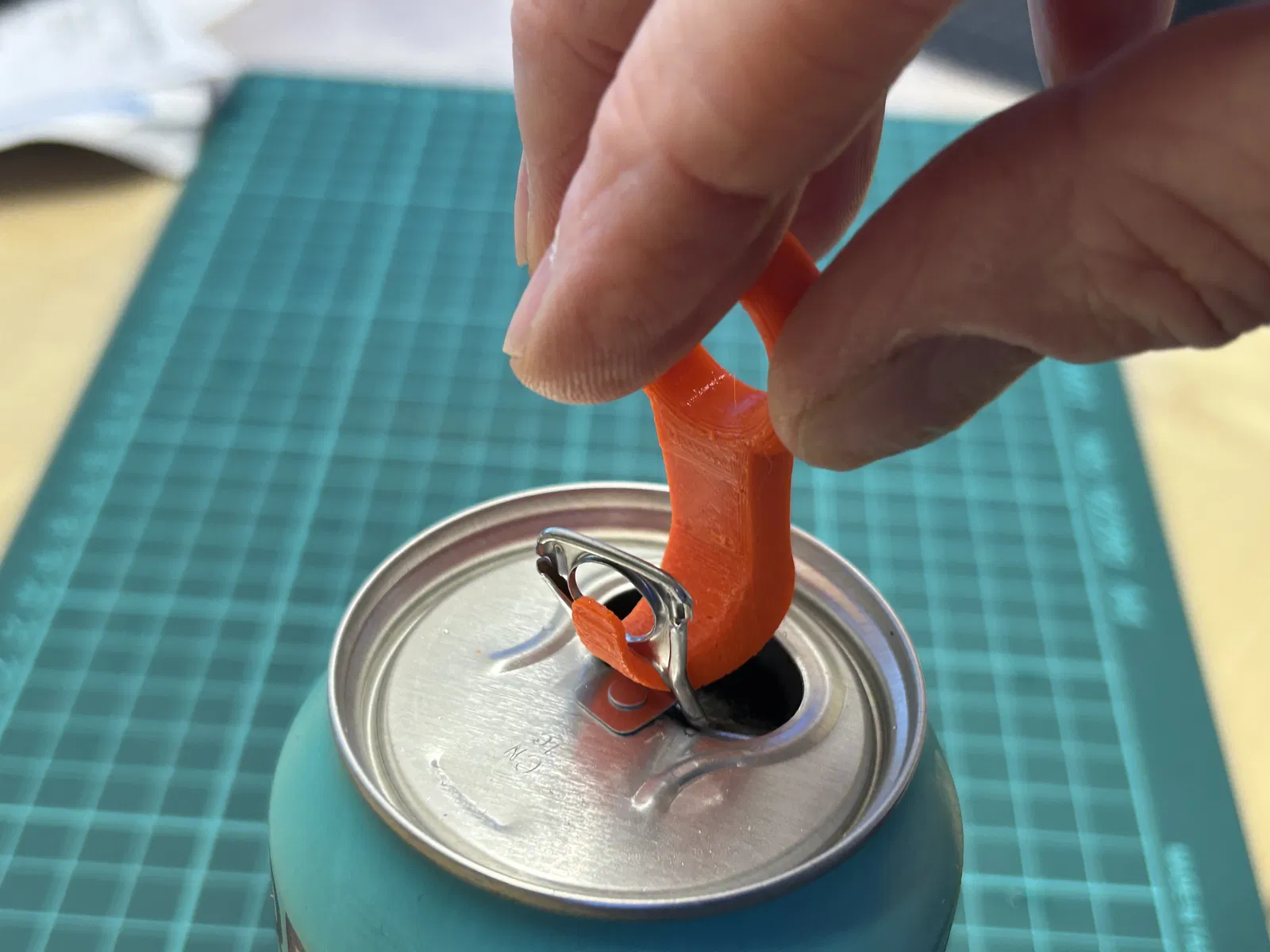 Một dụng cụ đơn giản để mở nắp khoen lon nước giải khát. Được thiết kế đặc biệt cho những người có lực cẳng tay và lực nắm yếu, giúp việc mở lon trở nên dễ dàng hơn. Có thể in với nhiều độ dày lớp khác nhau tùy theo mục đích sử dụng, từ thẩm mỹ đến độ bền.