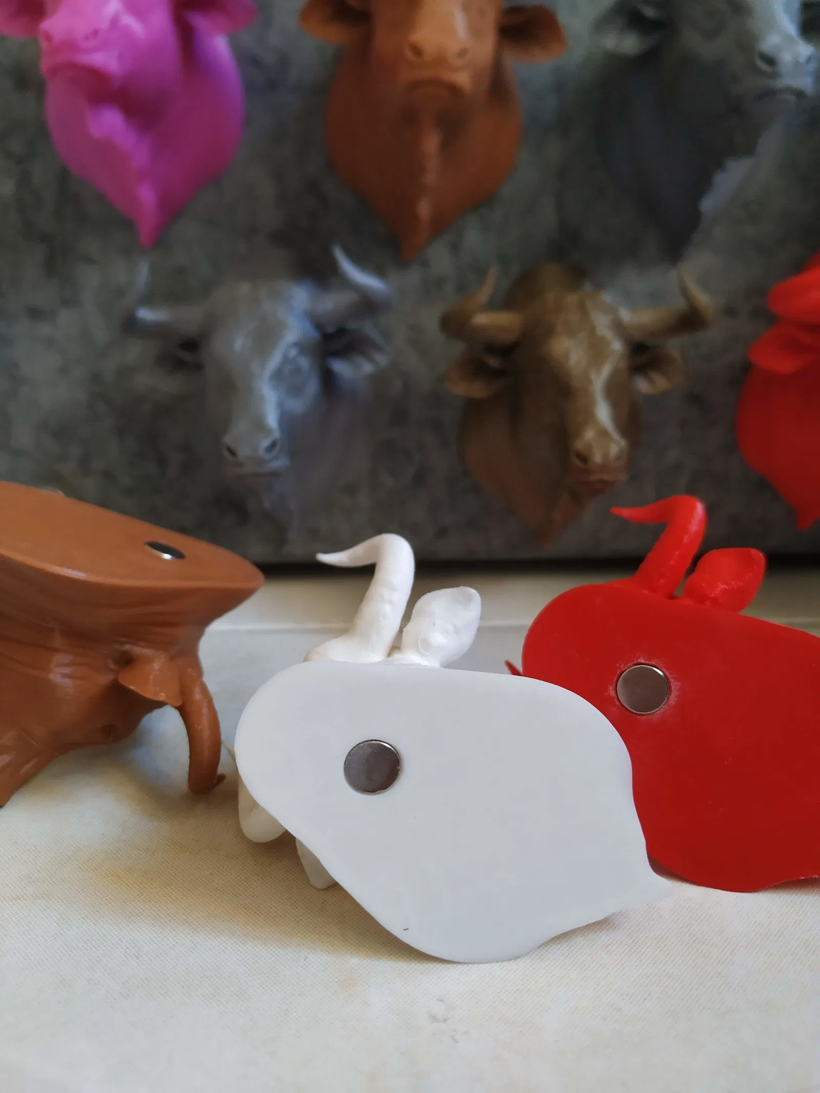 Xin chào! Mình xin giới thiệu mấy cái nam châm hình đầu bò, dành cho mấy fan cuồng của mấy con bò tót. Mấy cái đầu bò này gắn nam châm để bạn gắn lên tủ lạnh. File bò lớn không gắn nam châm cũng được đính kèm, để bạn có thể treo trên tường hoặc bất kỳ đâu để trang trí phòng.