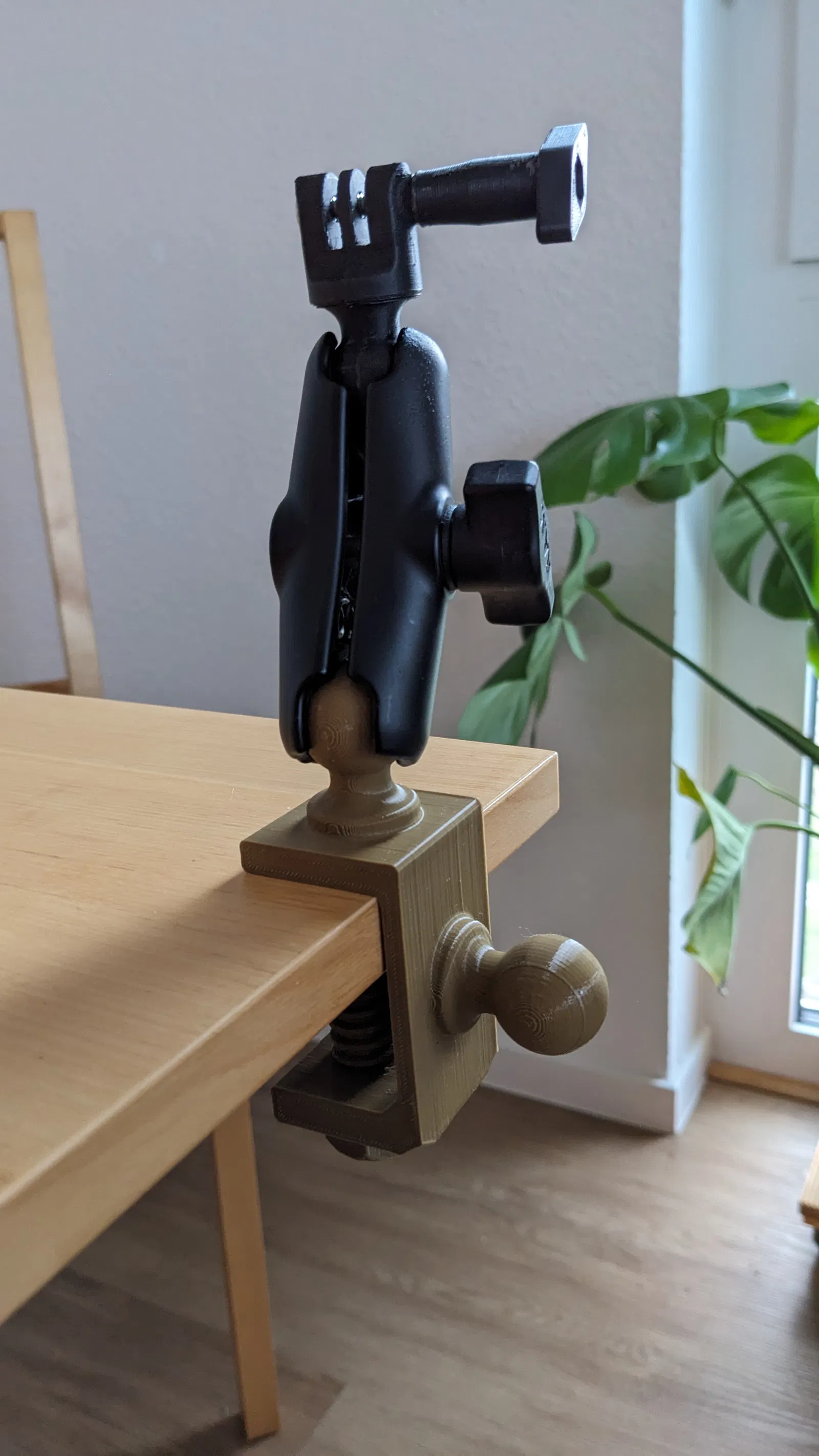 Tao muốn có một cách đơn giản để gắn camera lên kệ, bàn làm việc, v.v. Vì tao đã có sẵn một số bộ phận Ram Mount để gắn camera, nên tao quyết định sử dụng mấy cái này.