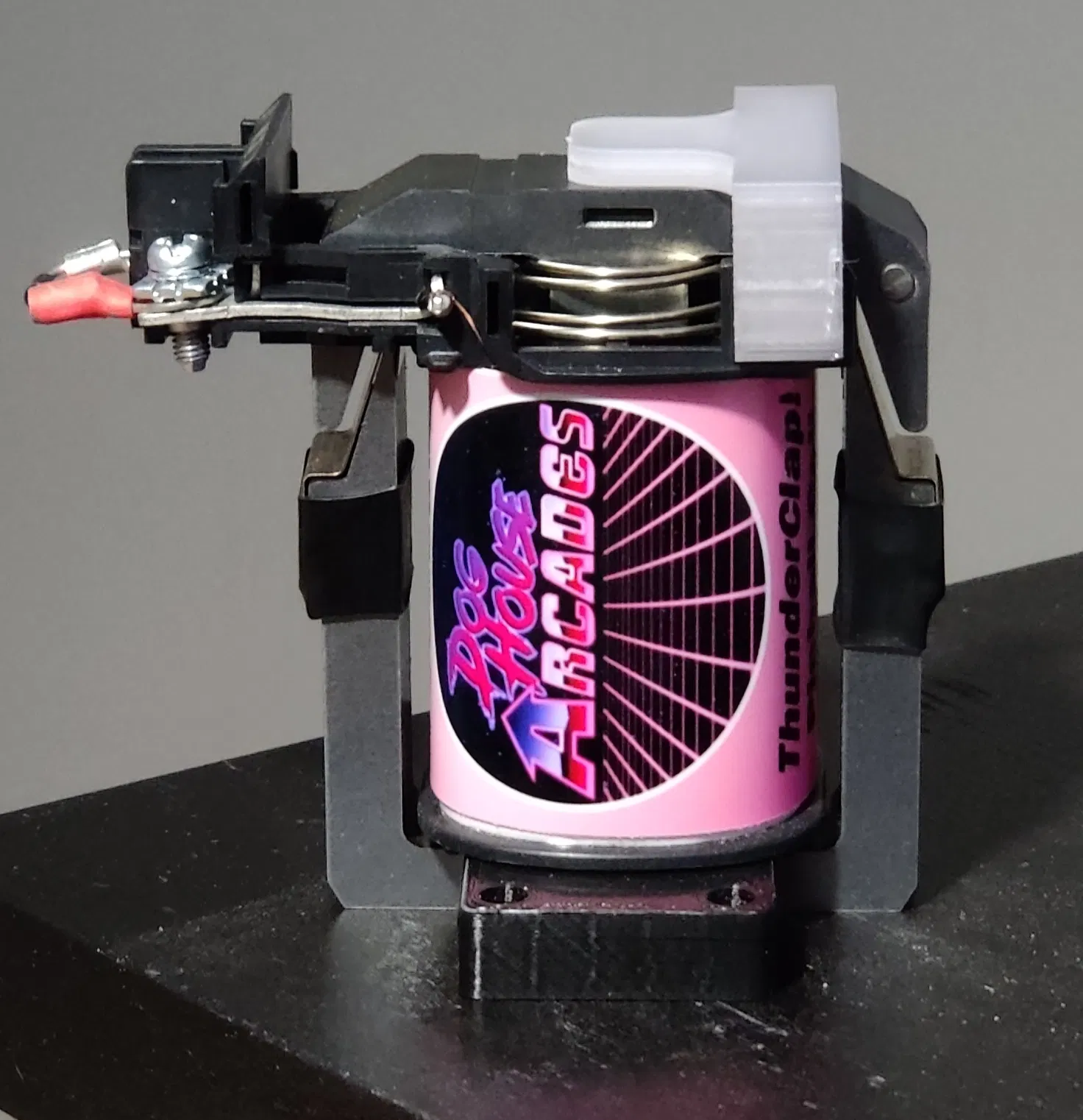 Tui thấy cái kẹp mỏng đi kèm với solenoid Thunderclap làm cho bộ phận di động bị nghiêng chút xíu, tui đoán là có thể làm cho một vài solenoid nghe hơi bị rè, nên tui đã tạo mẫu chi tiết này với cái cánh để giữ cho bộ phận đó cân bằng hơn.