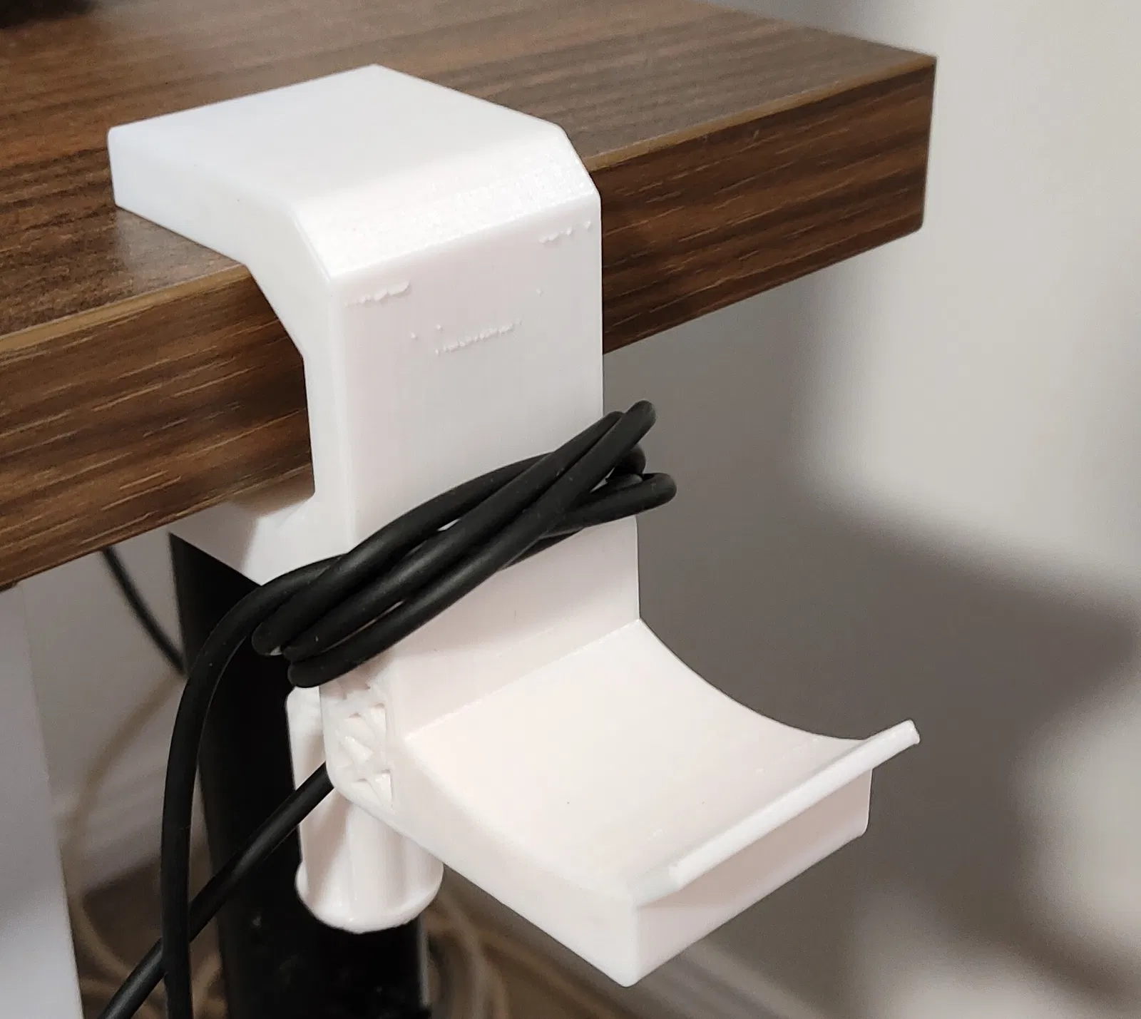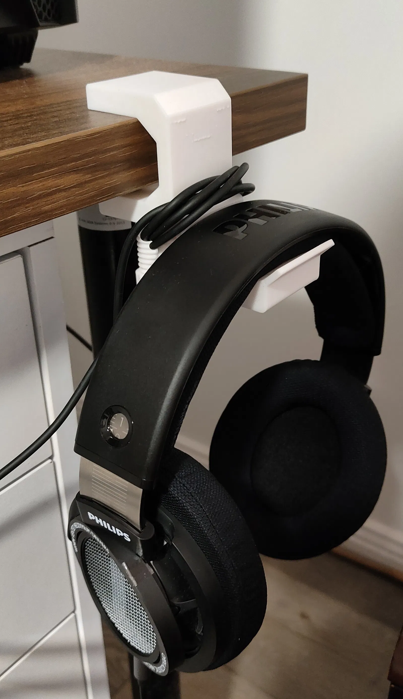 Đây là cái giá đỡ tai nghe gắn trên bàn làm việc, có ốc xoay in được và ren tích hợp sẵn trong khung.