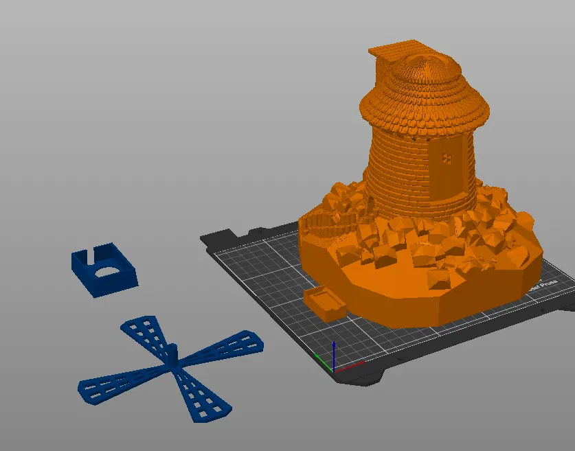 Đây là một cái cối xay gió. Nhưng nó không chạy bằng sức gió mà chạy bằng pin 9V hoặc nguồn 12V. Có bộ điều chỉnh tốc độ (rev regulator).