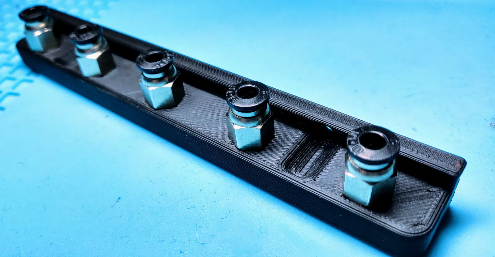 Đầu tiên, mình chà nhám phần này với giấy P600, sau đó mình đánh bóng nó bằng Dremel. Mình dùng ống nối khí nén PC4-M6 và vặn chúng vào. Cuối cùng, mình gắn nó bằng vài con ốc Ikea còn dư lên kệ Ikea của mình.