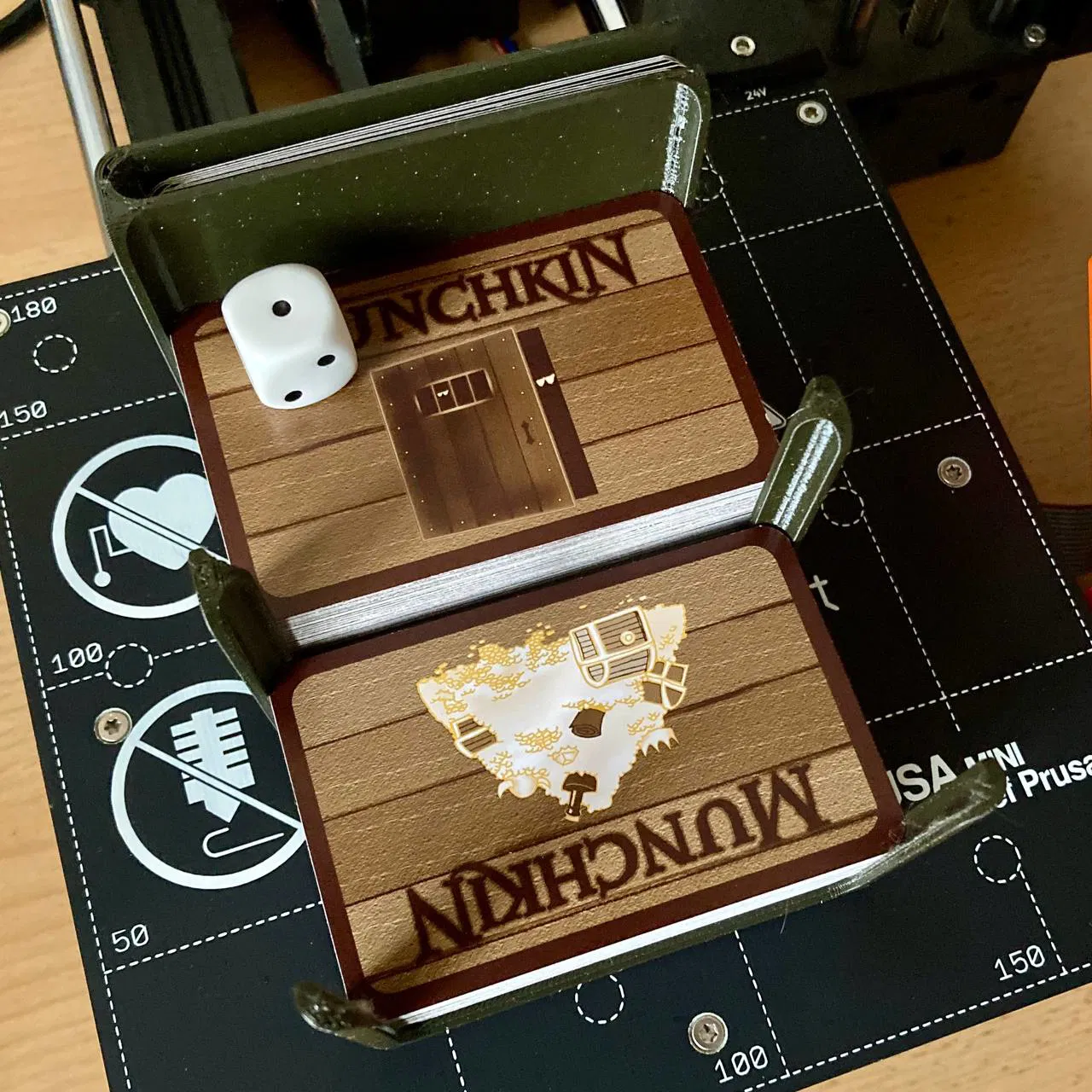 Hộp đựng cho game "Munchkin" này được thiết kế để vừa với các máy in có bàn in nhỏ, vì nó được chia thành hai phần. Mẫu này tối ưu hóa cho máy in nhỏ, đảm bảo độ bền và dễ dàng truy cập các lá bài.