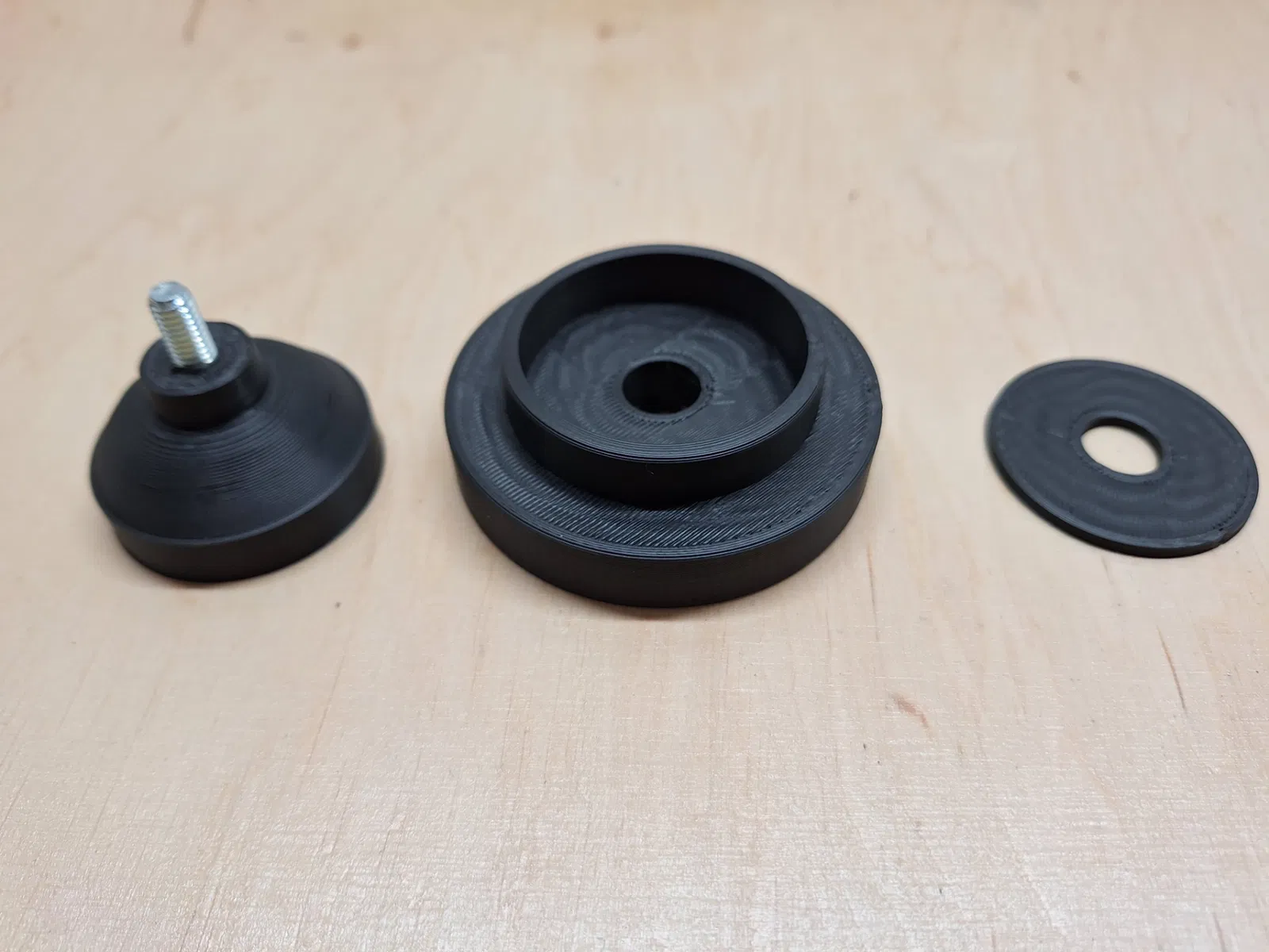 - Quan trọng: Bằng mọi cách, chân thay thế sẽ không hoạt động tốt như hàng gốc của nhà sản xuất. Tôi gợi ý bạn hãy thử nghiệm với cài đặt độ đặc ruột (infill) của đệm để đạt được khả năng hấp thụ tiếng ồn và sốc tốt nhất có thể. Vui lòng cho tôi biết cài đặt nào hoạt động tốt nhất với bạn!