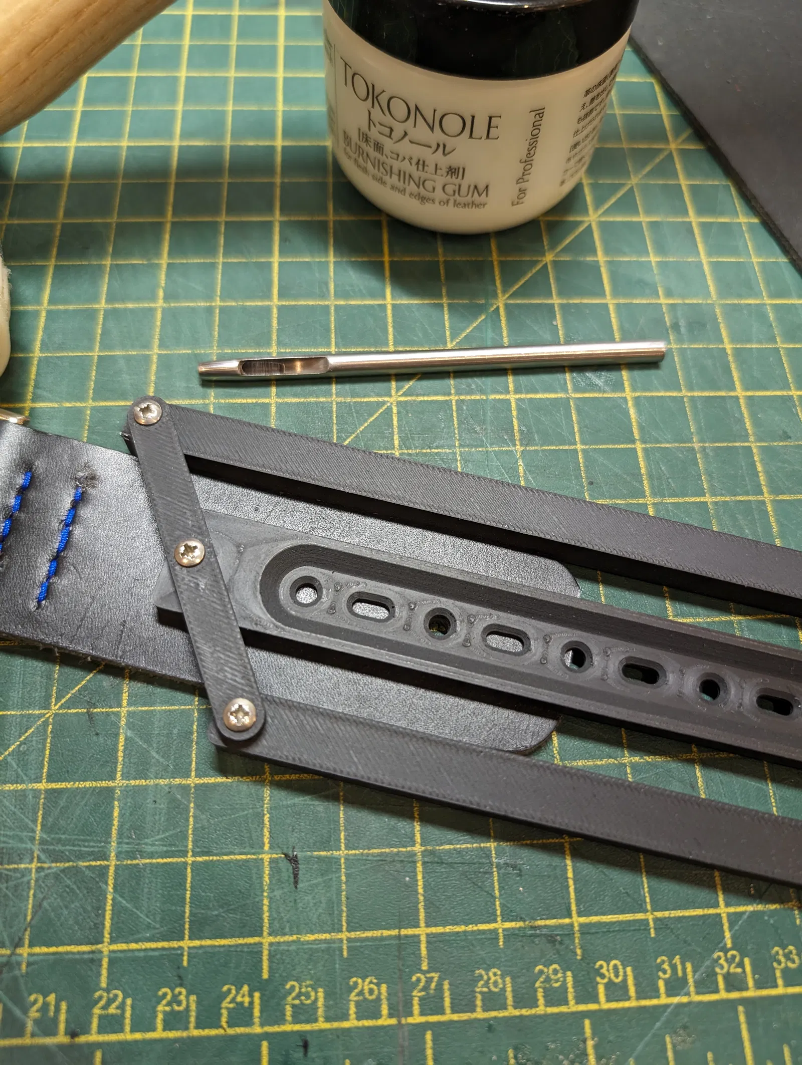 Đây là một công cụ giúp bạn tìm đường tâm của một dải da hoặc thắt lưng, sau đó đánh dấu các lỗ với khoảng cách đều nhau dọc theo đường tâm đó.