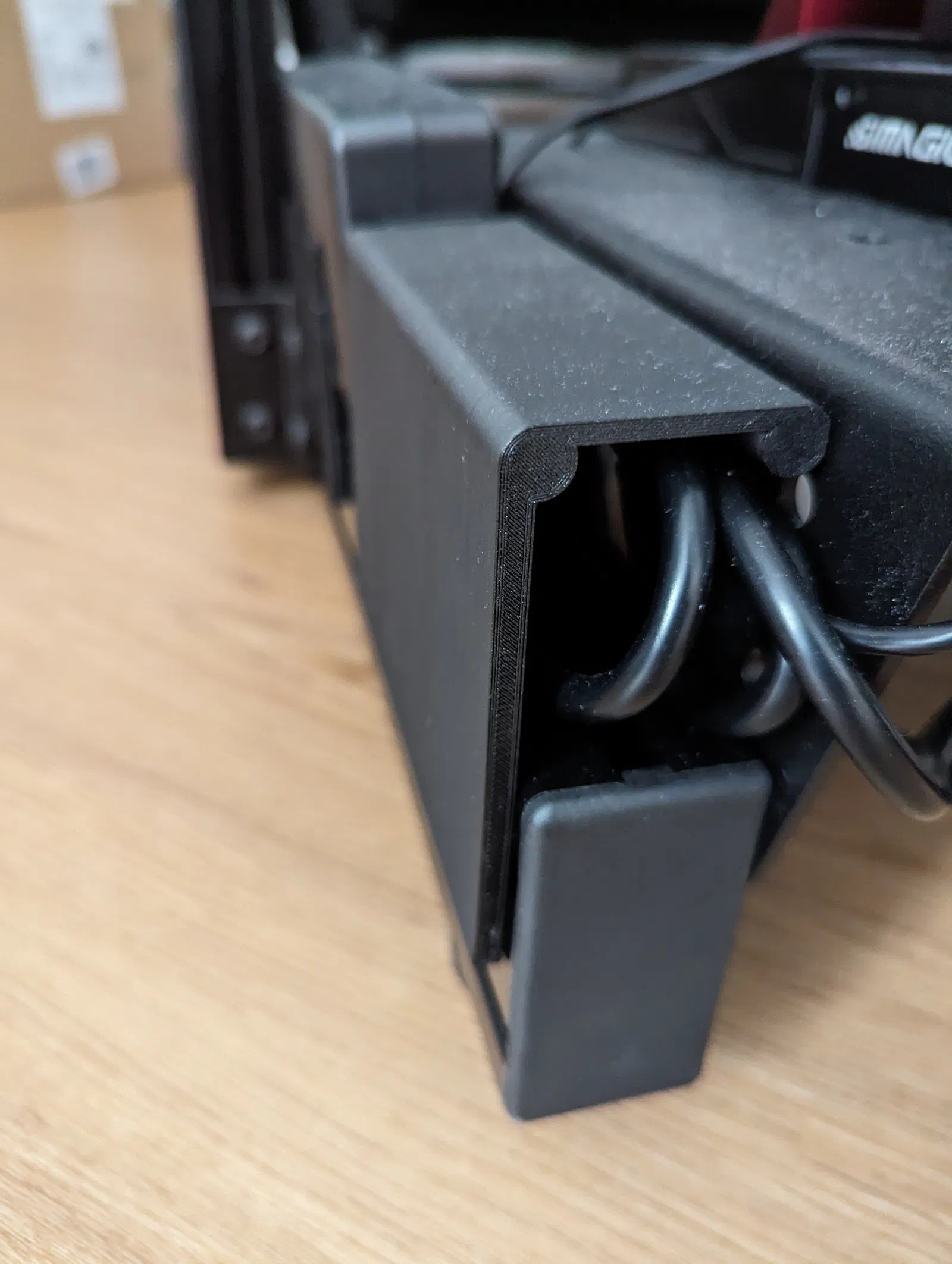 Nó có không gian rất rộng rãi vì mình có nhiều dây cáp cần đi. Bạn có thể in nhiều lần để tạo thành một cái chụp dài hơn hoặc với các độ dài khác nhau bằng cách thay đổi tỉ lệ kích thước tương ứng.