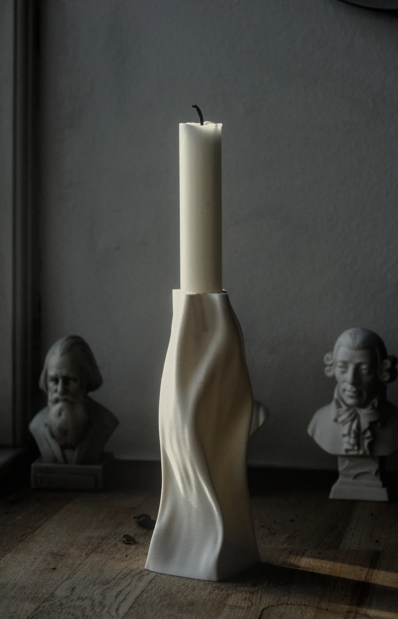 Chân nến cong đơn giản, đựng được một cây nến 21mm. Thích hợp để trang trí nhà cửa, tạo không gian ấm cúng. In với "lightning infill" và "layer height" thấp để tiết kiệm vật liệu và có bề mặt đẹp.