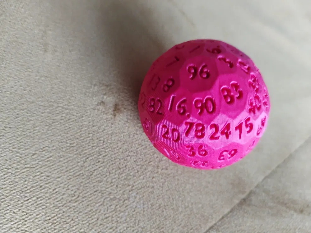 Đây là con xúc xắc d100 để bạn chơi game ttrpg hoặc các game khác. Con xúc xắc này không hoàn toàn công bằng vì không thể có 100 mặt công bằng tuyệt đối, nhưng tôi đã cố gắng làm cho nó gần nhất có thể. Tôi đã thử nghiệm và nó hoạt động khá tốt.